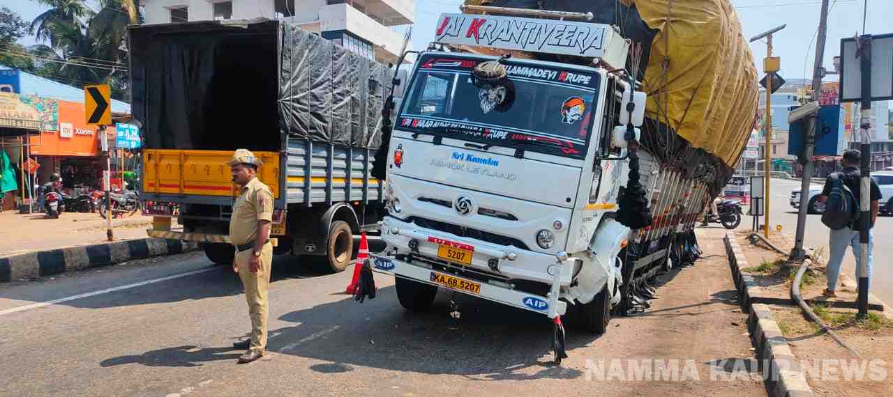 ಪಡುಬಿದ್ರಿ : ಕಾರಿಗೆ ಡಿಕ್ಕಿ ಹೊಡೆದು ಹೆದ್ದಾರಿಯಲ್ಲಿ ನಿಂತ ಲಾರಿ ; ಸಂಚಾರ ತೊಡಕು
