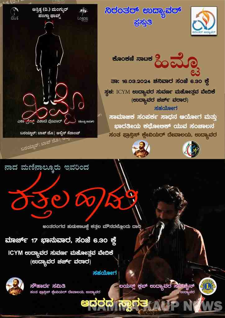 ಮಾ. 16-17 : ನಿರಂತರ್ ಉದ್ಯಾವರ - ಕೊಂಕಣಿ ನಾಟಕ ; ಕತ್ತಲಹಾಡು ಕಾರ್ಯಕ್ರಮ