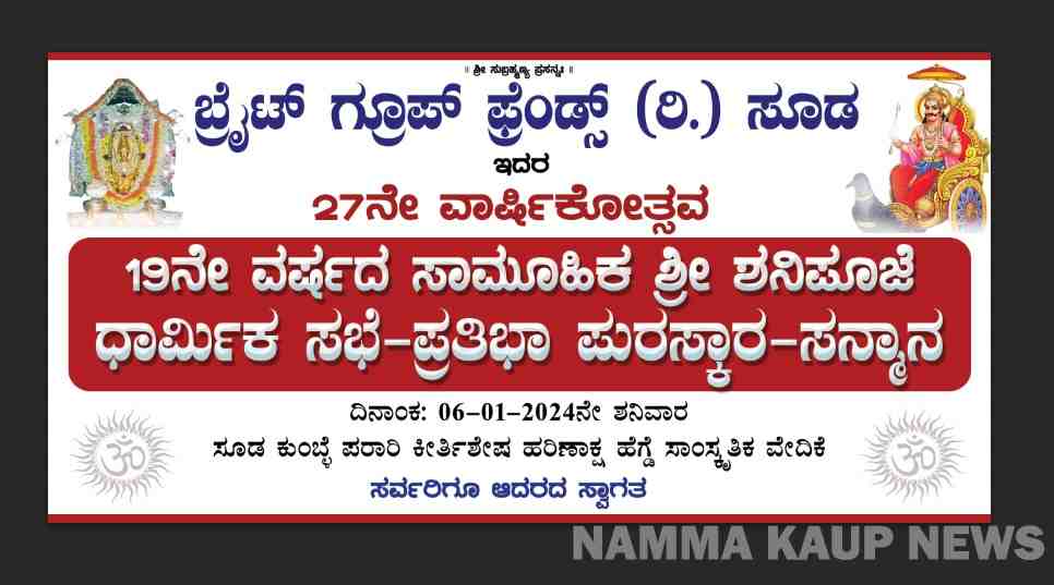 ಕಾರ್ಕಳ : ಬ್ರೈಟ್ ಗ್ರೂಪ್ ಫ್ರೆಂಡ್ಸ್ ಸೂಡ - ಸಾಮೂಹಿಕ ಶ್ರೀ ಶನಿಪೂಜೆ ಧಾರ್ಮಿಕ ಸಭೆ, ಪ್ರತಿಭಾ ಪುರಸ್ಕಾರ, ಸನ್ಮಾನ ಕಾರ್ಯಕ್ರಮ
