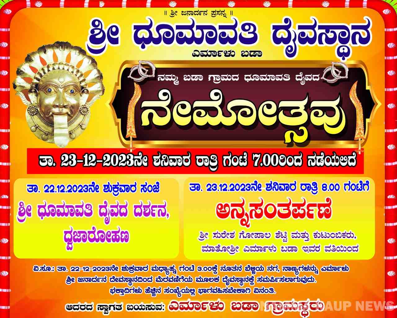 ಡಿಸೆಂಬರ್ 23 : ಶ್ರೀ ಧೂಮಾವತಿ ದೈವಸ್ಥಾನ ಎರ್ಮಾಳು ಬಡಾ - ನೇಮೋತ್ಸವ