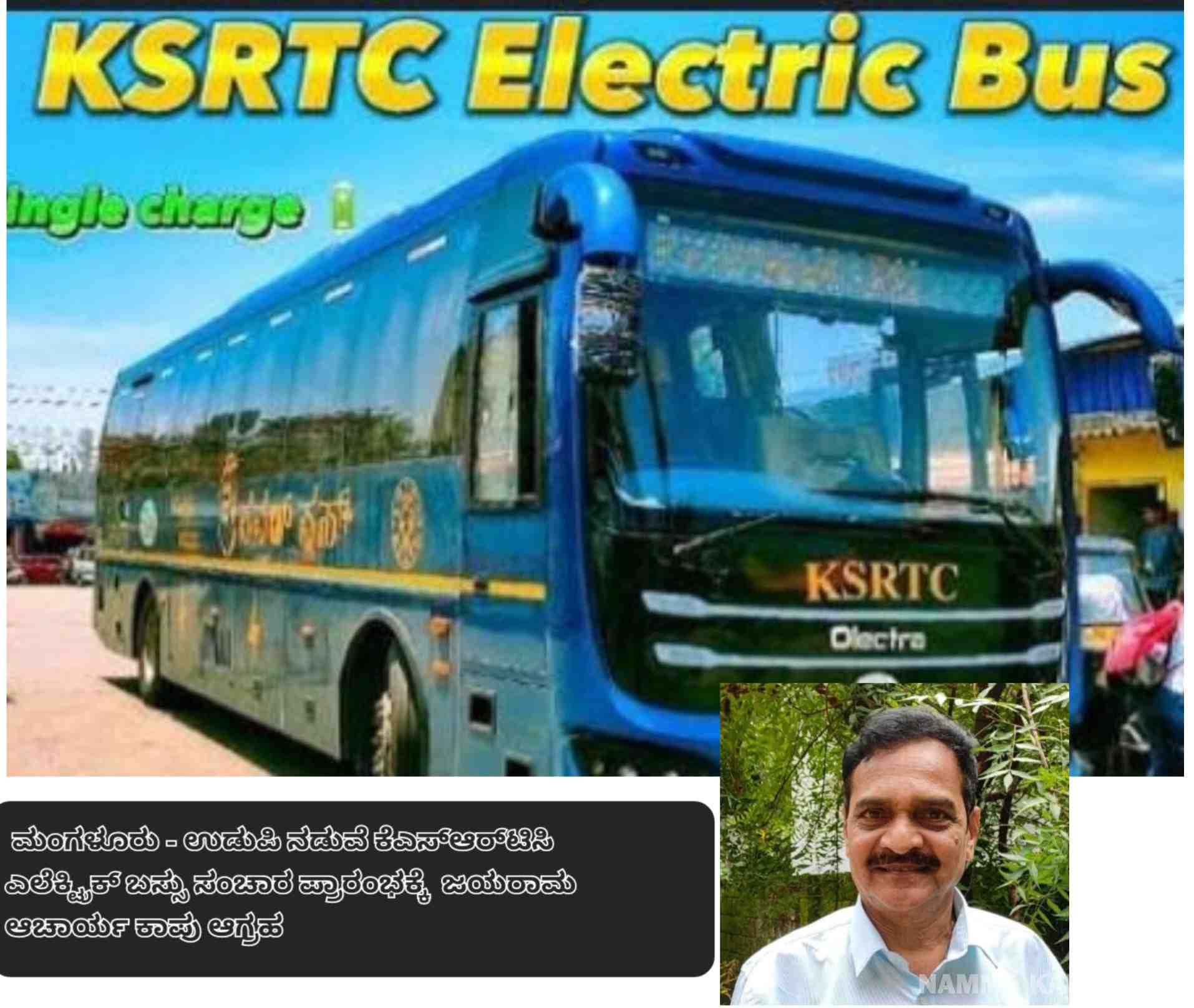 ಮಂಗಳೂರು - ಉಡುಪಿ ನಡುವೆ ಕೆಎಸ್ಆರ್ಟಿಸಿ ಎಲೆಕ್ಟ್ರಿಕ್ ಬಸ್ಸು ಸಂಚಾರ ಪ್ರಾರಂಭಕ್ಕೆ ಜಯರಾಮ ಆಚಾರ್ಯ ಕಾಪು ಆಗ್ರಹ
