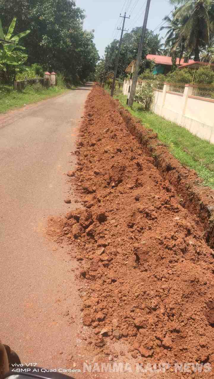 ಕಾಪು : ರಸ್ತೆ ಬದಿ ಪೈಪ್ ಲೈನ್ ಅಳವಡಿಕೆ - ಬಸ್ಸು ಬಾರದೆ ಸಂಕಷ್ಟ