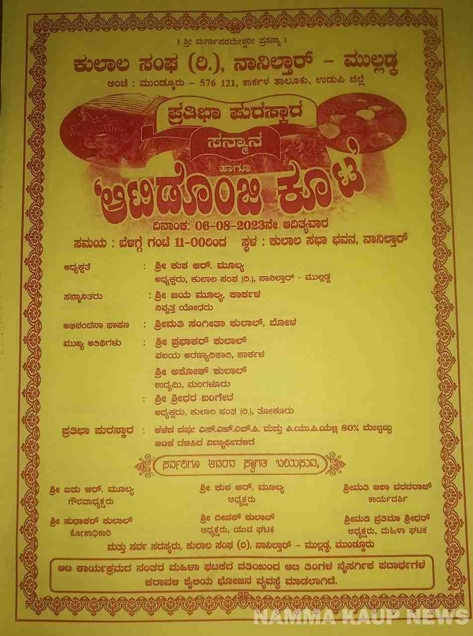 ಆಗಸ್ಟ್ 6: ಕುಲಾಲ ಸಂಘ ನಾನಿಲ್ತಾರು, ಸನ್ಮಾನ, ಪ್ರತಿಭಾ ಪುರಸ್ಕಾರ ಕಾರ್ಯಕ್ರಮ