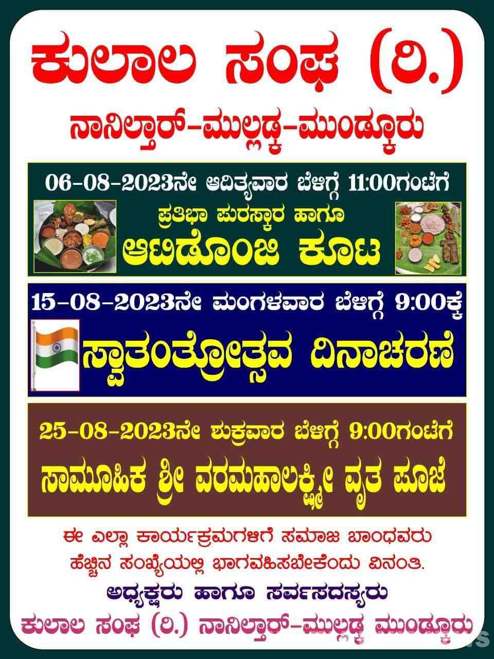 ಕಾರ್ಕಳ : ಕುಲಾಲ ಸಂಘ ನಾನಿಲ್ತಾರ್ ವತಿಯಿಂದ ಆಗಸ್ಟ್ ತಿಂಗಳಲ್ಲಿ ಸರಣಿ ಕಾರ್ಯಕ್ರಮಗಳು