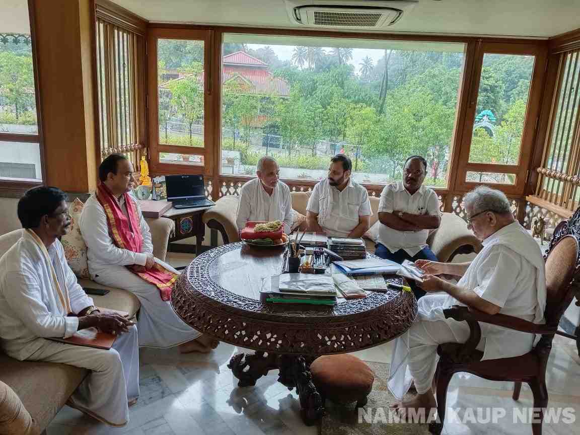 ಧರ್ಮಸ್ಥಳ ಧರ್ಮಾಧಿಕಾರಿ ಡಾ. ವಿರೇಂದ್ರ ಹೆಗ್ಗಡೆ ಭೇಟಿಯಾದ ಕಾಪು ಶ್ರೀ ಹೊಸ ಮಾರಿಗುಡಿ ದೇವಸ್ಥಾನದ ಜೀರ್ಣೋದ್ಧಾರ ಸಮಿತಿ
