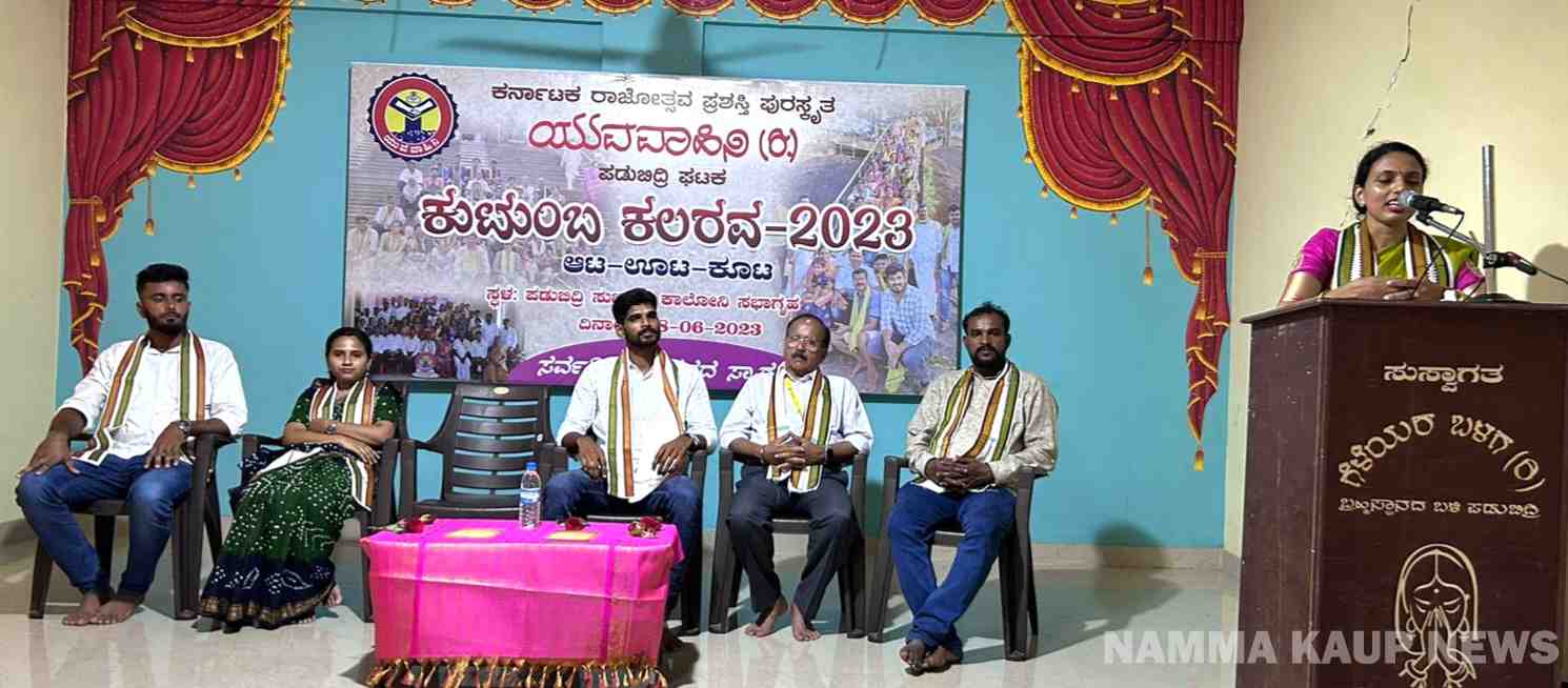ಪಡುಬಿದ್ರಿ : ಯುವವಾಹಿನಿ ಸದಸ್ಯರ ನಡುವಿನ ಬಾಂಧವ್ಯ ಗಟ್ಟಿಯಾಗಲು ಕುಟುಂಬ ಕಲರವದಂತಹ ಕಾರ್ಯಗಳು ಅನಿವಾರ್ಯ. ಹಿರಿಯರ ಜೊತೆ ಕಿರಿಯರು ಒಟ್ಟಾದಾಗ ಸಂಸ್ಥೆಯ ಭವಿಷ್ಯ ಭದ್ರವಾಗುತ್ತದೆ. ಯುವವಾಹಿನಿ ಪಡುಬಿದ್ರಿ ಘಟಕದಿಂದ ಇನ್ನಷ್ಟು ಕಾರ್ಯಗಳು ನಡೆಯಲಿ ಎಂದು ಪಡುಬಿದ್ರಿ ಕೆನರಾ ಬ್ಯಾಂಕ್ ಪ್ರಬಂಧಕಿ ಸೌಮ್ಯ ನಿತೇಶ್ ಹೇಳಿದರು. ಅವರು ರವಿವಾರ ಪಡುಬಿದ್ರಿ ಸುಜ್ಲಾನ್ ಕಾಲೋನಿಯ ಸಭಾಗೃಹದಲ್ಲಿ ಯುವವಾಹಿನಿ ಪಡುಬಿದ್ರಿ ಘಟಕದ ಕುಟುಂಬದ ಸದಸ್ಯರಿಗಾಗಿ ನಡೆದ ಕುಟುಂಬ ಕಲರವ - 2023 ಕಾರ್ಯಕ್ರಮದಲ್ಲಿ ಮುಖ್ಯ ಅತಿಥಿಯಾಗಿ ಆಗಮಿಸಿ ಮಾತನಾಡಿದರು.