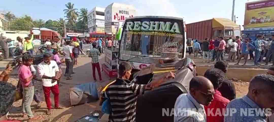 ಪಡುಬಿದ್ರಿ : ಚಾಲಕನ ನಿಯಂತ್ರಣ ತಪ್ಪಿದ ಬಸ್ ; ಆಟೋ ರಿಕ್ಷಾ ಜಖಂ