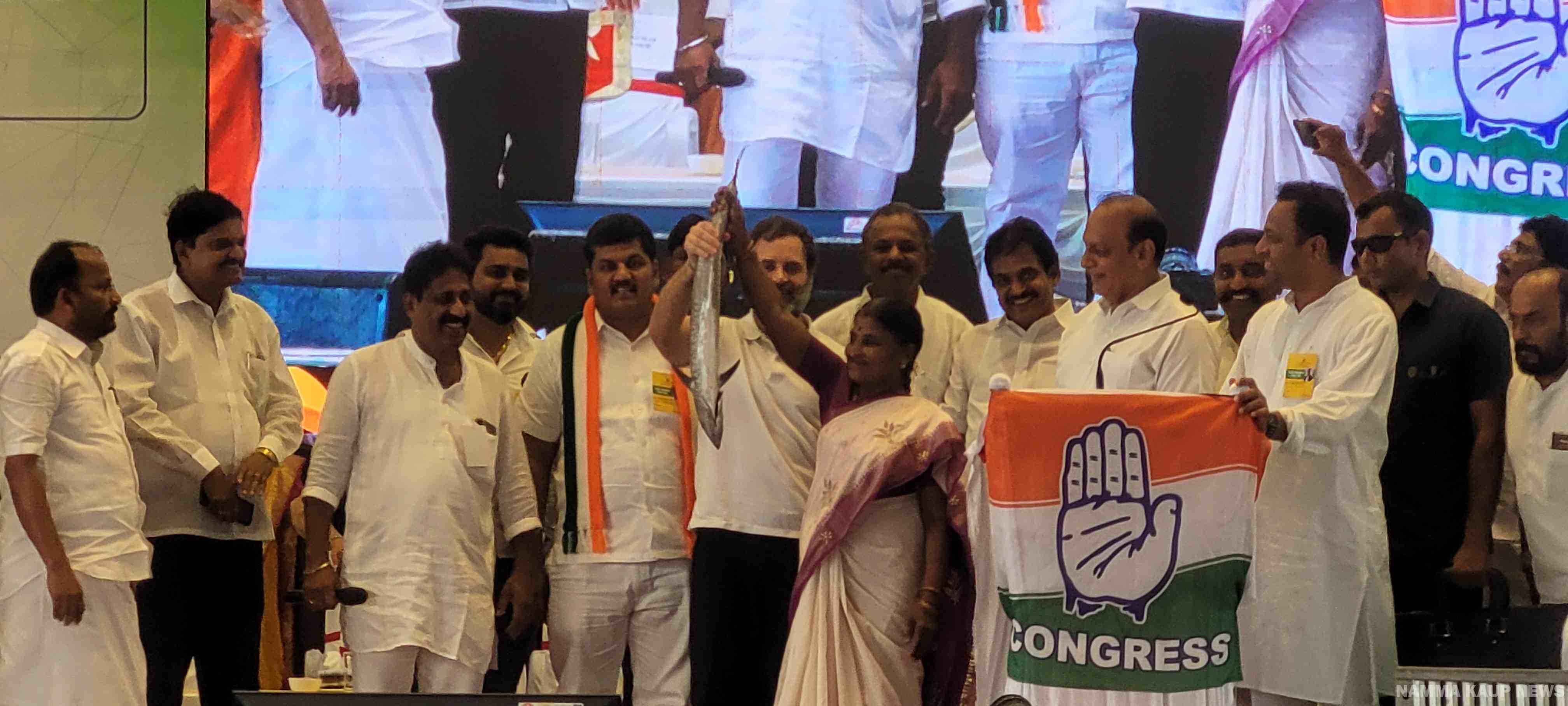 ಉಚ್ಚಿಲ : ರಾಹುಲ್ ಗಾಂಧಿಗೆ ಅಂಜಲ್ ಮೀನು ನೀಡಿದ ಮಹಿಳೆ