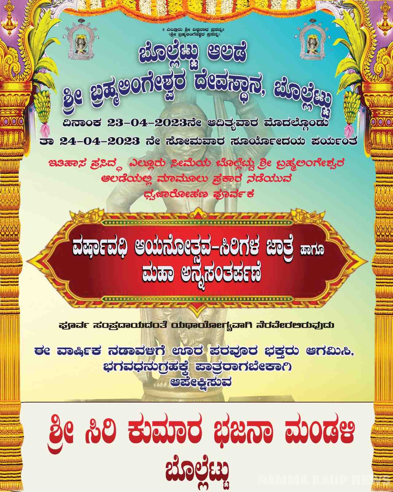 ಏಪ್ರಿಲ್ 23, 24 : ಬೊಲ್ಲೆಟ್ಟು ಆಲಡೆಯಲ್ಲಿ ಆಯನೋತ್ಸವ - ಸಿರಿಗಳ ಜಾತ್ರೆ, ಮಹಾ ಅನ್ನ ಸಂತರ್ಪಣೆ