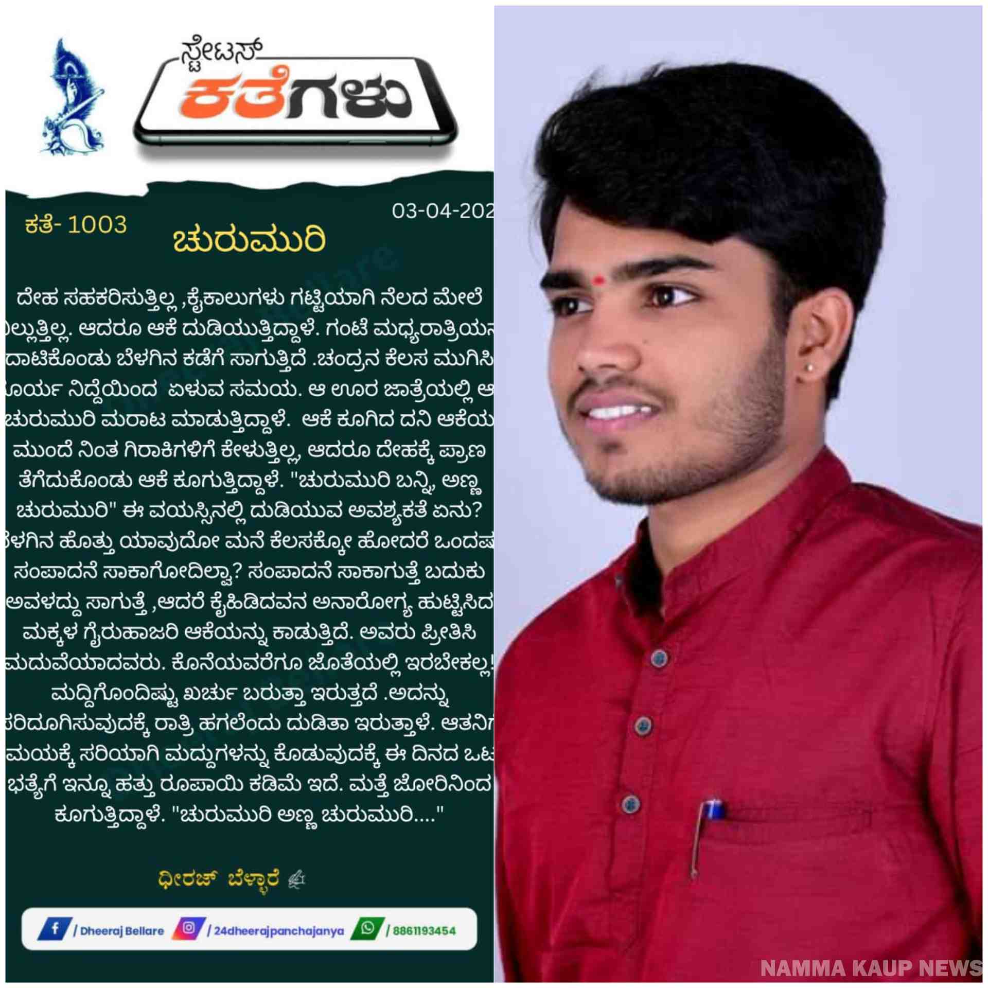 ಕೊರೋನಾ ಸಮಯ ಒಂದಷ್ಟು ಪ್ರತಿಭೆಗಳು ಬೆಳಕಿಗೆ ಬಂದದ್ದಂತು ನಿಜ. ಎಲ್ಲಾ ಸ್ತಬ್ಧವಾಗಿದ್ದರೂ ಕತೆ, ಕವನ, ನೃತ್ಯ, ಮಾತು ಇತ್ಯಾದಿ ಚಟುವಟಿಕೆಗಳಿಗೆ ಕೊರತೆ ಇರಲಿಲ್ಲ. ಪ್ರತಿನಿತ್ಯದ ಬಿಝಿಗಳ ನಡುವೆ ಮೊಬೈಲ್ ನಲ್ಲಿ ಕಾಲ ಕಳೆಯುವ ಈ ಕಾಲಘಟ್ಟದಲ್ಲಿ ವಾಟ್ಸಾಪ್ ಸ್ಟೇಟಸ್ ಕತೆಗಳ ಮೂಲಕ ಗಮನ ಸೆಳೆದ ವ್ಯಕ್ತಿ ಧೀರಜ್ ಬೆಳ್ಳಾರೆ.