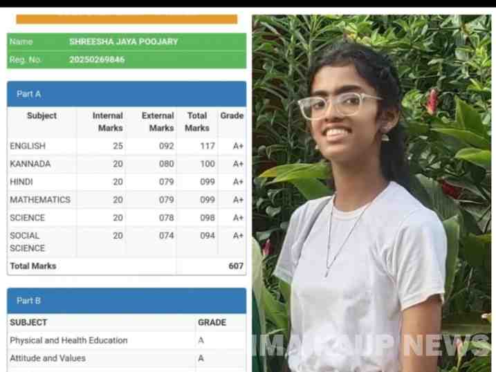 ಎಸ್ ಎಸ್ ಎಲ್ ಸಿ ವಾರ್ಷಿಕ ಪರೀಕ್ಷೆ : ಶ್ರೀಷಾ ಜಯ ಪೂಜಾರಿ 607 (ಶೇ. 97.12) ಅಂಕ