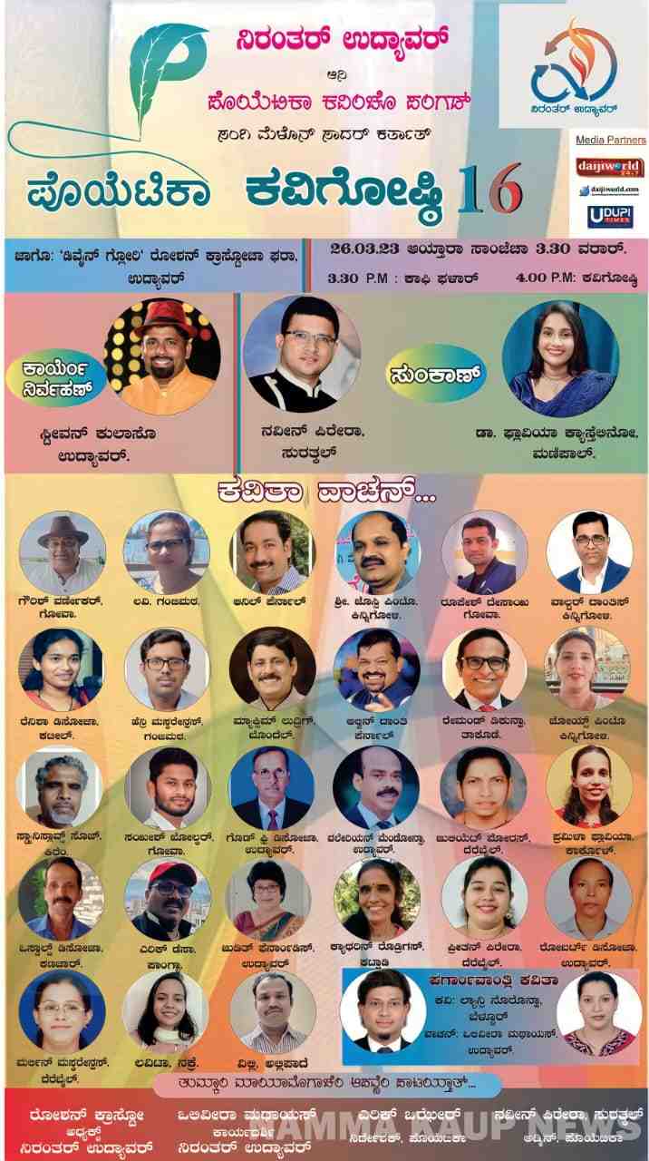 ಮಾರ್ಚ್ 26 : ಉದ್ಯಾವರದಲ್ಲಿ ಕೊಂಕಣಿ ಕವಿಗೋಷ್ಠಿ
