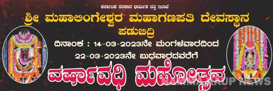 ಪಡುಬಿದ್ರಿ : ಮಾ.14ರಿಂದ ಮಾ.22ರವರೆಗೆ ಶ್ರೀ ಮಹಾಲಿಂಗೇಶ್ವರ ಮಹಾಗಣಪತಿ ದೇವಸ್ಥಾನದಲ್ಲಿ ವರ್ಷಾವಧಿ ಮಹೋತ್ಸವ