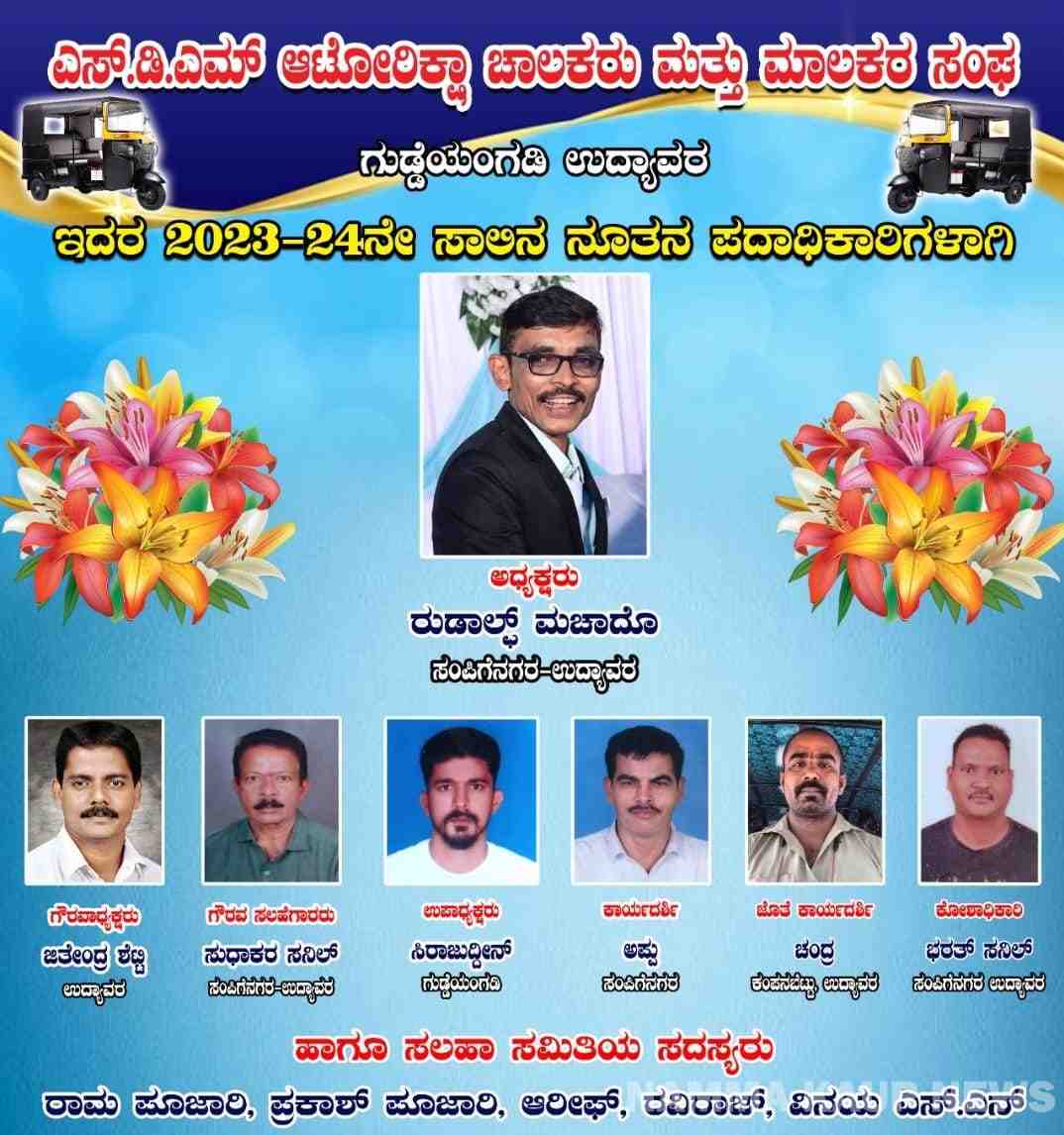 ಎಸ್.ಡಿ.ಎಂ. ಆಟೋ ರಿಕ್ಷಾ ಚಾಲಕರು ಮತ್ತು ಮಾಲಕರ ಸಂಘ ಗುಡ್ಡೆಯಂಗಡಿ : ರುಡಾಲ್ಫ್ ಮಚಾದೊ ಅಧ್ಯಕ್ಷರಾಗಿ ಆಯ್ಕೆ