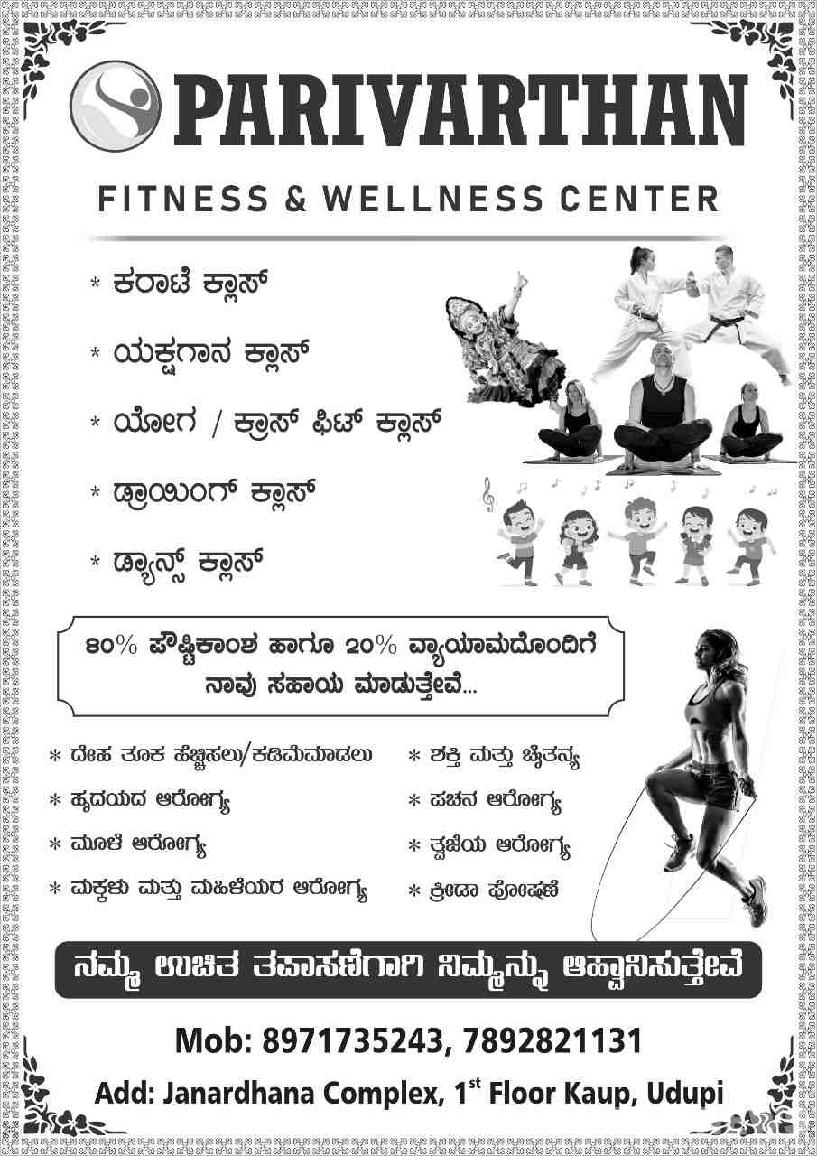 ಉಡುಪಿ ಜಿಲ್ಲೆಯ ಕಾಪುವಿನ ಪರಿವರ್ತನ್ ಫಿಟ್ನೆಸ್ ಮತ್ತು ವೆಲ್ನೆಸ್ ಸೆಂಟರ್ ನಲ್ಲಿ ಕರಾಟೆ ಕ್ಲಾಸ್, ಯಕ್ಷಗಾನ ಕ್ಲಾಸ್, ಯೋಗ / ಕ್ರಾಸ್ ಫಿಟ್ ಕ್ಲಾಸ್, ಡ್ರಾಯಿಂಗ್ ಕ್ಲಾಸ್, ಡ್ಯಾನ್ಸ್ ಕ್ಲಾಸ್ ತರಗತಿಗಳನ್ನು ನಡೆಸಲಾಗುತ್ತಿದೆ.