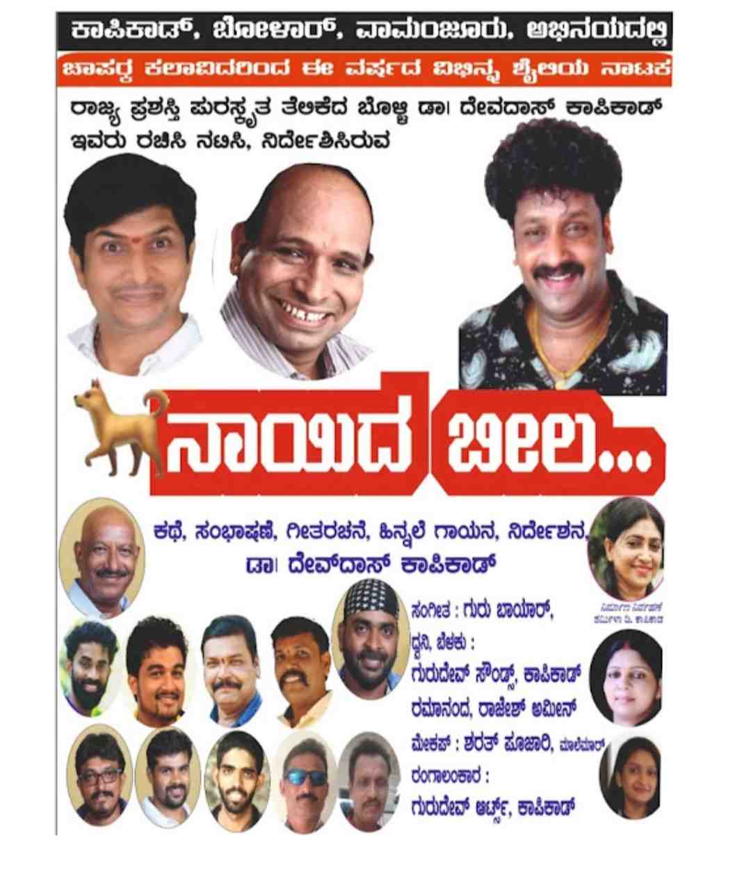 ಫಲಿಮಾರು : ಶ್ರೀ ಬ್ರಹ್ಮಲಿಂಗೇಶ್ವರ ಬ್ರಹ್ಮಸ್ಥಾನ, ಕೊಡಂಚಾಲ, ಅವರಾಲು, ವಯಾ ಹೆಜಮಾಡಿ, ಫಲಿಮಾರು ಗ್ರಾಮ, ಉಡುಪಿ ಜಿಲ್ಲೆ ಇದರ ಜೀರ್ಣೋದ್ಧಾರ ಸಹಾಯಾರ್ಥವಾಗಿ ನವಂಬರ್ 5 ರ ಶನಿವಾರ ಸಂಜೆ 4.30 ಕ್ಕೆ ಸಂತಕ್ರೂಜ್ ನ ಬಿಲ್ಲವ ಭವನದಲ್ಲಿ ರಾಜ್ಯ ಪ್ರಶಸ್ತಿ ಪುರಸ್ಕೃತ ತೆಲಿಕೆದ ಬೊಳ್ಳಿ ಡಾ. ದೇವದಾಸ್ ಕಾಪಿಕಾಡ್ ರಚಿಸಿ ನಿರ್ದೇಶಿಸಿರುವ, ಕಾಪಿಕಾಡ್, ಬೋಳಾರ್, ವಾಮಂಜೂರು ಅಭಿನಯದಲ್ಲಿ " ನಾಯಿದ ಬೀಲ..." ತುಳು ಹಾಸ್ಯಮಯ ನಾಟಕ ಪ್ರದರ್ಶನಗೊಳ್ಳಲಿದೆ.
