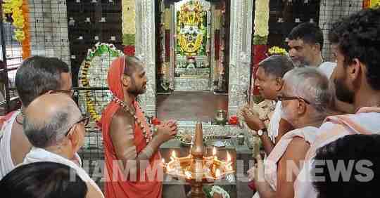 ಪಡುಬಿದ್ರಿ : ಶ್ರೀ ವೆಂಕಟರಮಣ ದೇವಳಕ್ಕೆ ಪಾದಯಾತ್ರೆ ಕೈಗೊಂಡ ಶ್ರೀ ವಾಮನಾಶ್ರಮ ಸ್ವಾಮೀಜಿ ಭೇಟಿ