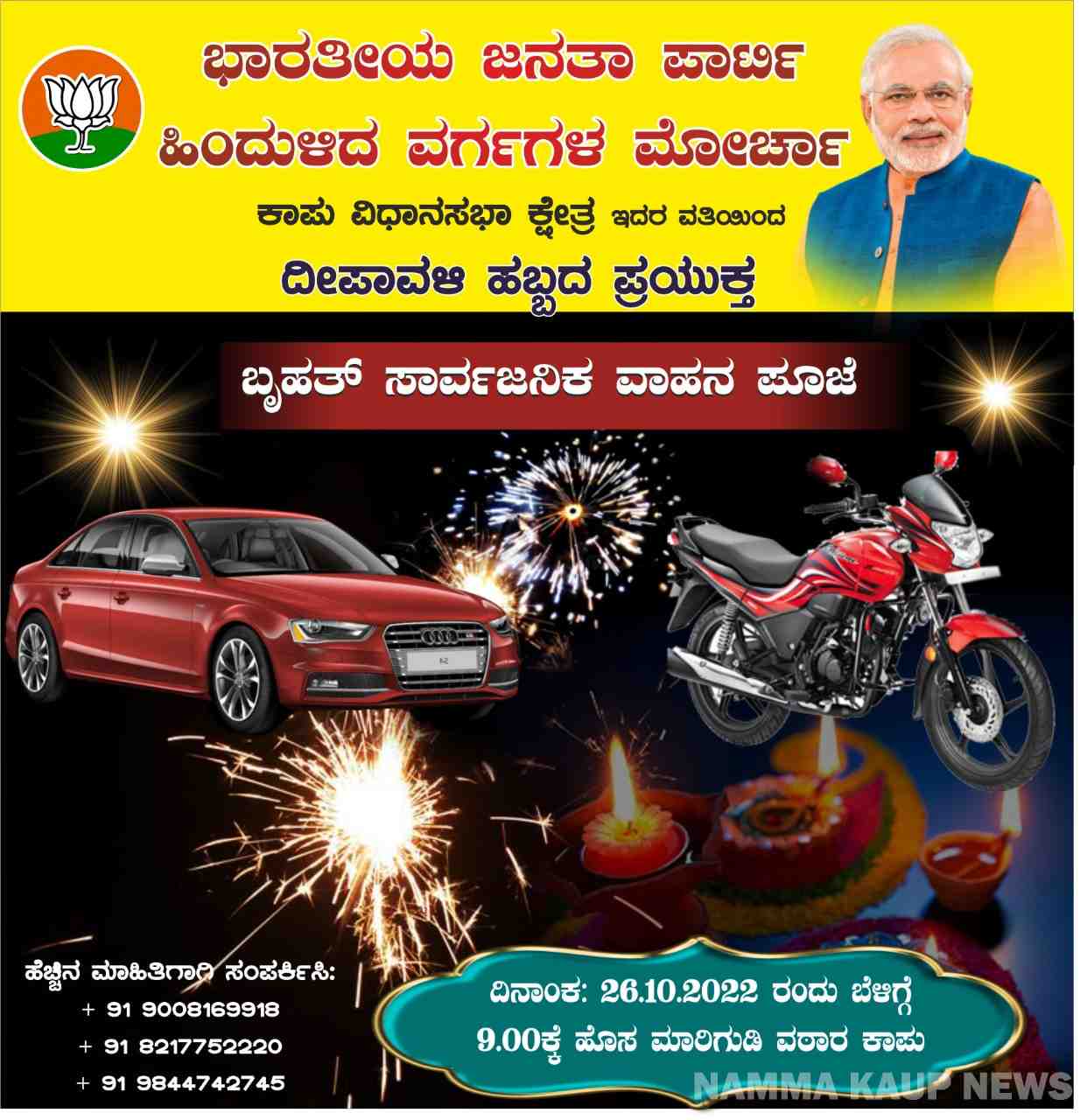 ಅಕ್ಟೋಬರ್ 26 : ಕಾಪು ಬಿಜೆಪಿ ಹಿಂದುಳಿದ ಮೋರ್ಚಾ ವತಿಯಿಂದ ಬೃಹತ್ ಸಾರ್ವಜನಿಕ ವಾಹನ ಪೂಜೆ