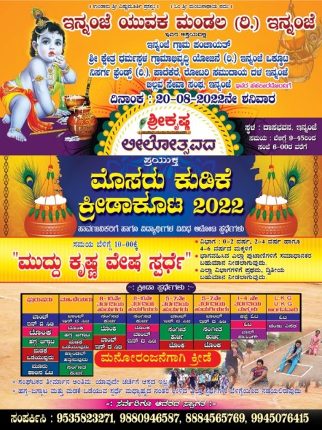ಇನ್ನಂಜೆ : ಶ್ರೀಕೃಷ್ಣ ಲೀಲೋತ್ಸವದ ಪ್ರಯುಕ್ತ ಮೊಸರು ಕುಡಿಕೆ ಕ್ರೀಡಾಕೂಟ 2022 "ಮುದ್ದು ಕೃಷ್ಣ ವೇಷ ಸ್ಪರ್ಧೆ"