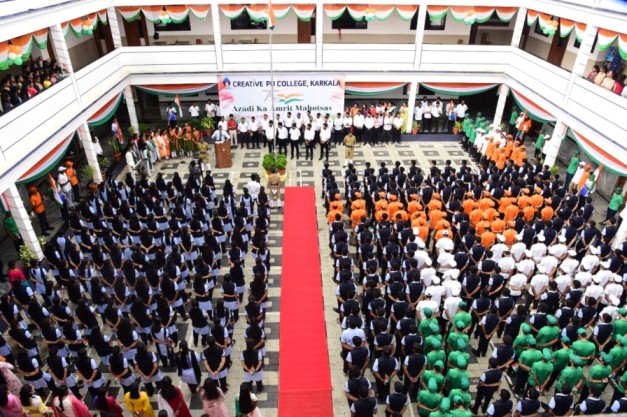 ಕಾರ್ಕಳ : ದೇಶದ ಇತಿಹಾಸವನ್ನು ಅರಿಯದೇ ಇದ್ದಲ್ಲಿ ಇತಿಹಾಸವನ್ನು ಸೃಜಿಸಲು ಅಸಾಧ್ಯ. ಹಿಂದೆ ಆದ ಐತಿಹಾಸಿಕ ದುರ್ಘಟನೆಗಳಿಂದ ಪಾಠ ಕಲಿತು ಸಂಪೂರ್ಣ ಸ್ವದೇಶಿ ಭಾವ ಭಾರತದ ಯುವಕ-ಯುವತಿಯರಲ್ಲಿ ಜಾಗೃತಗೊಂಡು ದೇಶ ಸೇವೆಯೇ ಗುರಿಯಾಗಿರಲಿ ಎಂದು ನಿವೃತ್ತ ಏರ್ ವೈಸ್ ಮಾರ್ಷಲ್ ರಮೇಶ್ ಕಾರ್ಣಿಕ್ ವಿದ್ಯಾರ್ಥಿಗಳಿಗೆ ಕರೆ ನೀಡಿದರು. ಕಾರ್ಕಳದ ಕ್ರಿಯೇಟಿವ್ ಪದವಿ ಪೂರ್ವ ಕಾಲೇಜಿನಲ್ಲಿ 75 ನೇ ಸ್ವಾತಂತ್ರ್ಯೋತ್ಸವದ ಸಮಾರಂಭದಲ್ಲಿ ಧ್ವಜಾರೋಹಣವನ್ನು ನೆರವೇರಿಸಿ, ಸ್ವಾತಂತ್ರ್ಯ ದಿನದ ಸಂದೇಶ ನೀಡಿದರು. ವಿಶ್ವದ ಬಲಾಢ್ಯ ರಾಷ್ಟ್ರಗಳ ಸಾಲಿನಲ್ಲಿ ಭಾರತವು ಕಂಗೊಳಿಸುತ್ತಿದೆ. ಮುಂದಿನ ದಿನಗಳಲ್ಲಿ ರಾಷ್ಟ್ರವು ಭೌಗೋಳಿಕವಾಗಿ, ಆರ್ಥಿಕವಾಗಿ, ಸಾಮಾಜಿಕವಾಗಿ ಉನ್ನತಿ ಪಡೆಯಲಿ ಅದಕ್ಕೆ ಇಂದಿನ ಯುವ ಸಮೂಹವೇ ಮುಂದಾಳತ್ವ ವಹಿಸಲಿ ಎಂದು ಹಾರೈಸಿದರು.