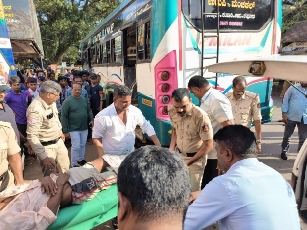 ಕಾಪು ಪೇಟೆಯಲ್ಲಿ ಬಸ್ಸಿನಡಿಗೆ ಬಿದ್ದ ವ್ಯಕ್ತಿ : ಕಾಲು ಮುರಿತ ; ಆಸ್ಪತ್ರೆಗೆ ದಾಖಲು