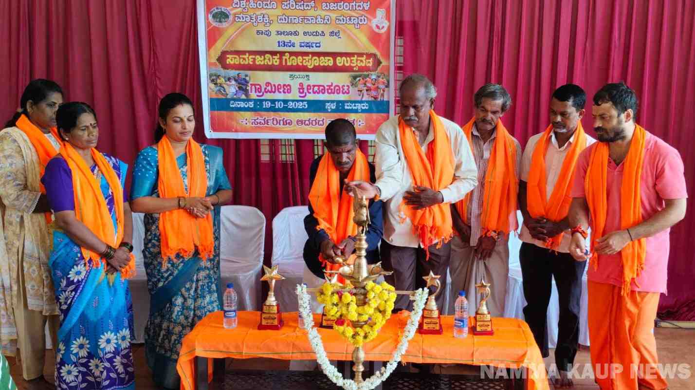 ಕಾಪು : ವಿಶ್ವ ಹಿಂದೂ ಪರಿಷದ್ ಬಜರಂಗದಳ ಮಾತೃಶಕ್ತಿ ದುರ್ಗಾವಾಹಿನಿ ಮಟ್ಟಾರು ನೇತೃತ್ವದಲ್ಲಿ ದೀಪಾವಳಿ ಹಬ್ಬದ ಅಂಗವಾಗಿ ನಡೆಯುವ 13 ನೇ ವರ್ಷದ ಸಾರ್ವಜನಿಕ ಗೋಪೂಜಾ ಉತ್ಸವದ ಪ್ರಯುಕ್ತ ನಡೆದ ಗ್ರಾಮೀಣ ಕ್ರೀಡಾಕೂಟವನ್ನು ಶಿರ್ವ ನಡಿಬೆಟ್ಟು ಬಳಿಯ ಕೃಷಿಕರಾದ ಶ್ರೀನಿವಾಸ ಆಚಾರ್ಯ ಉದ್ಘಾಟಿಸಿದರು.