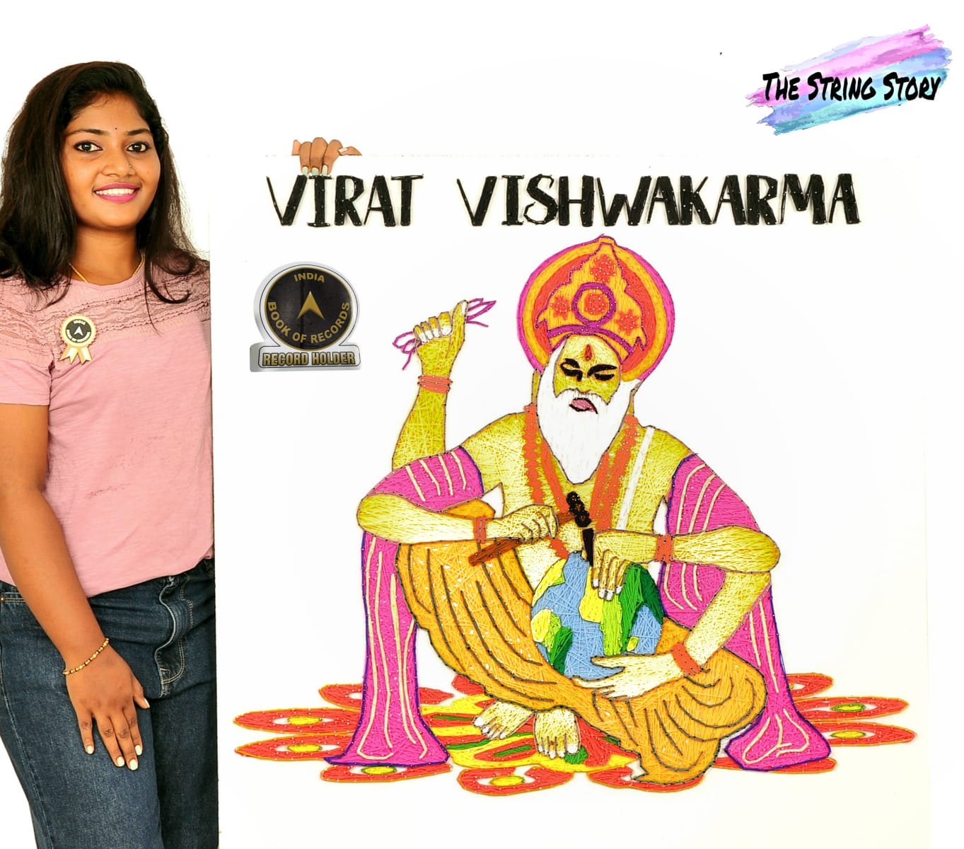 37.8 × 38 ಇಂಚಿನ ಬೋರ್ಡ್ನಲ್ಲಿ 20 ವಿವಿಧ ಬಣ್ಣದ ತಂತಿಗಳನ್ನು ಬಳಸಿ 3/4 ಮತ್ತು 1 ಇಂಚಿನ ಮೊಳೆಗಳನ್ನು ಬಳಸಿ ವಿರಾಟ್ ವಿಶ್ವಕರ್ಮರ ಅತಿದೊಡ್ಡ ಸ್ಟ್ರಿಂಗ್ ಆರ್ಟ್ ಭಾವಚಿತ್ರಕ್ಕಾಗಿ ಇಂಡಿಯಾ ಬುಕ್ ಆಫ್ ರೆಕಾರ್ಡ್ಸ್ನಲ್ಲಿ ದಾಖಲೆಯನ್ನು ಮಾಡಿದ್ದಾರೆ.