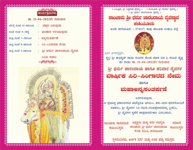 ನಾಂಜಾರು ಶ್ರೀ ಧರ್ಮ ಜಾರಂದಾಯ ದೈವಸ್ಥಾನ ಪಣಿಯೂರು : ಶ್ರೀ ಧರ್ಮ ಜಾರಂದಾಯ ಹಾಗೂ ಪರಿವಾರ ದೈವಗಳ ವಾರ್ಷಿಕ ಸಿರಿ-ಸಿಂಗಾರದ ನೇಮ