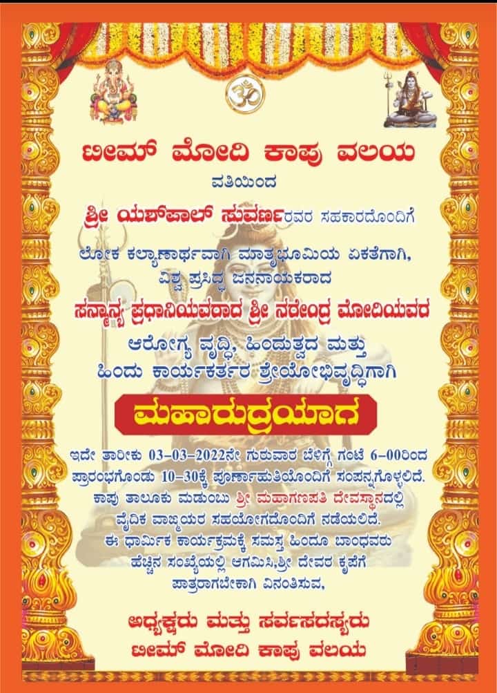 ಟೀಮ್ ಮೋದಿ ಕಾಪು ವಲಯದಿಂದ ನಾಳೆ ಮಹಾರುದ್ರಯಾಗ