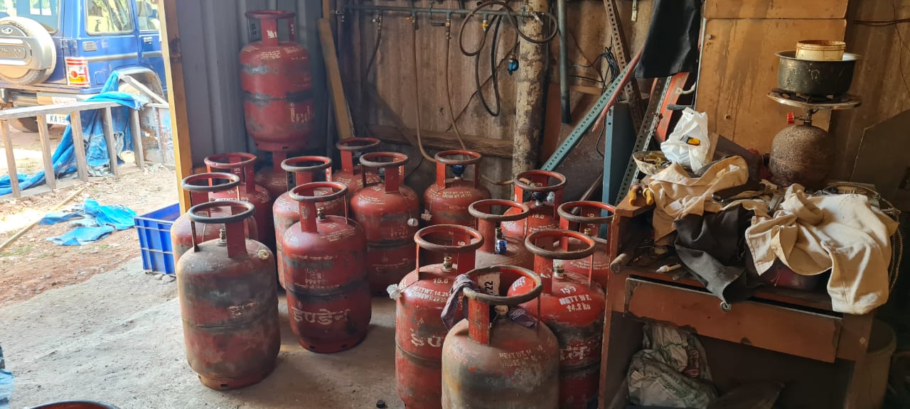 ಡೊಮೆಸ್ಟಿಕ್ ಗ್ಯಾಸ್ ಸಿಲಿಂಡರ್ನಿಂದ ಖಾಲಿ ಕಮರ್ಷಿಯಲ್ ಸಿಲಿಂಡರ್ ಗೆ ಕೃತಕವಾಗಿ ತುಂಬಿಸಿ ಮಾರಾಟ ಮಾಡುತ್ತಿದ್ದ ಸ್ಥಳಕ್ಕೆ ಪೋಲಿಸ್ ಧಾಳಿ ; ಆರೋಪಿ ಪರಾರಿ