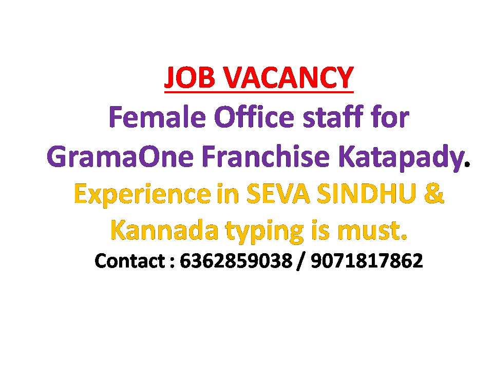 ಕಟಪಾಡಿ ಗ್ರಾಮ ಒನ್ ಕೇಂದ್ರದಲ್ಲಿ : ಉದ್ಯೋಗಾವಕಾಶ