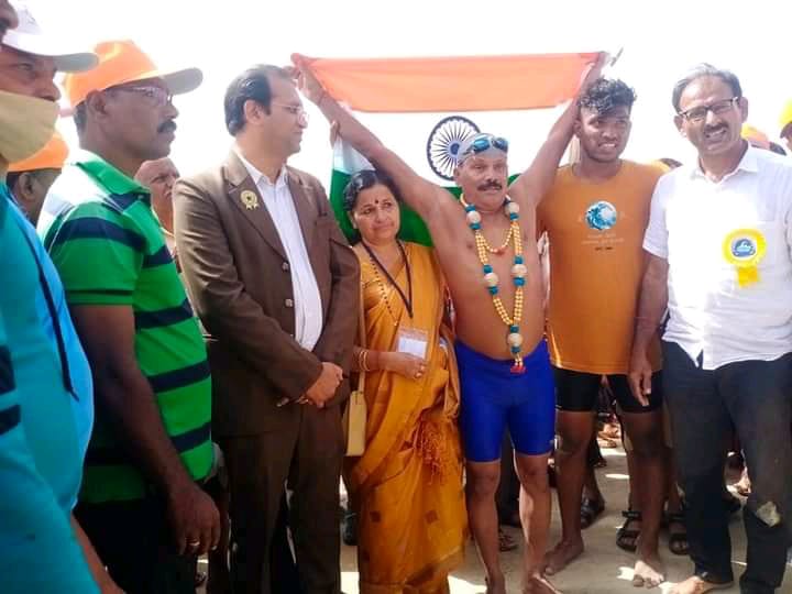 ಕೈ,ಕಾಲುಗಳಿಗೆ ಕಬ್ಬಿಣದ ಸರಪಳಿಯಿಂದ ಬೀಗ ಜಡಿದು ಅರಬ್ಬೀ ಸಮುದ್ರದಲ್ಲಿ ಈಜಿ ಗೋಲ್ಡನ್ ಬುಕ್ ಆಫ್ ರೆಕಾರ್ಡ್ ಸಾಧನೆಗೈದ ಗಂಗಾಧರ್ ಜಿ. ಕಡೆಕಾರ್