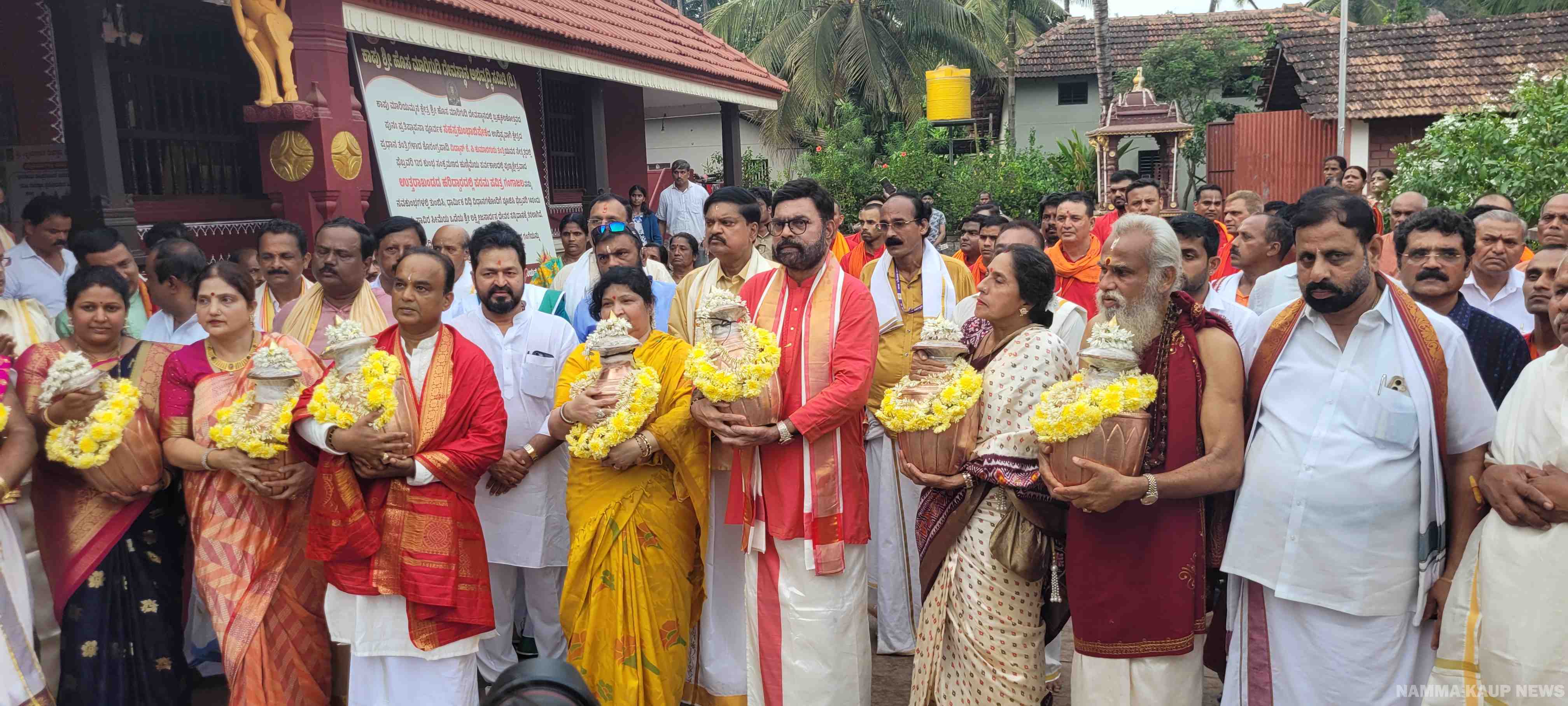 ಕಾಪು ಶ್ರೀ ಹೊಸ ಮಾರಿಗುಡಿ ದೇವಳಕ್ಕೆ ಆಗಮಿಸಿದ ನವಕುಂಭಗಳಲ್ಲಿ ಪೂಜೆಗೊಂಡ ಗಂಗಾಜಲ