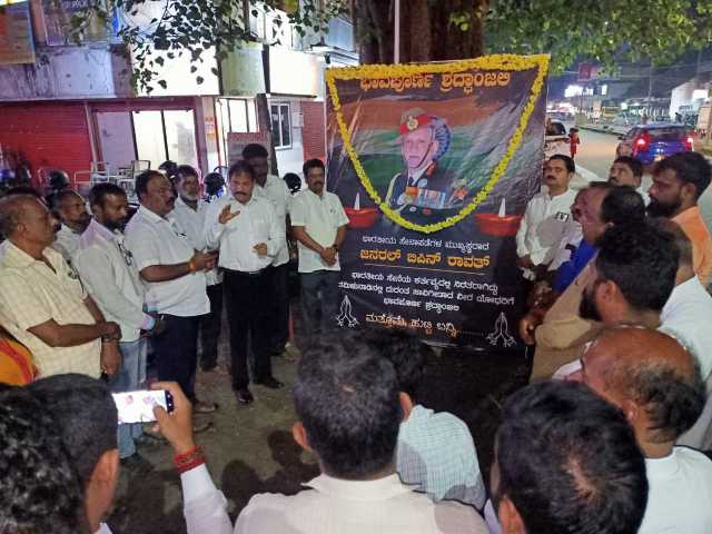 ಕಾಪು : ತಮಿಳುನಾಡಿನಲ್ಲಿ ಹೆಲಿಕಾಪ್ಟರ್ ದುರಂತದಲ್ಲಿ ಮಡಿದ ಭಾರತೀಯ ಸೇನೆಯ ಅತ್ಯುನ್ನತ ಹುದ್ದೆಯನ್ನು ನಿರ್ವಹಿಸುತ್ತಿದ್ದ ಸೇನಾ ಪಡೆಗಳ ಮುಖ್ಯಸ್ಥರಾದ "ಜನರಲ್ ಬಿಪಿನ್ ರಾವತ್" ಹಾಗೂ ಭಾರತೀಯ ಸೇನೆಯಲ್ಲಿ ಕಾರ್ಯ ನಿರ್ವಹಿಸುತ್ತಿದ್ದ ವೀರ ಯೋಧರಿಗೆ ಬಿಜೆಪಿ ಯುವಮೋರ್ಚಾ ಕಾಪು ಮಂಡಲದ ವತಿಯಿಂದ ಭಾವಪೂರ್ಣ ಶ್ರದ್ಧಾಂಜಲಿ ಅರ್ಪಿಸಲಾಯಿತು.