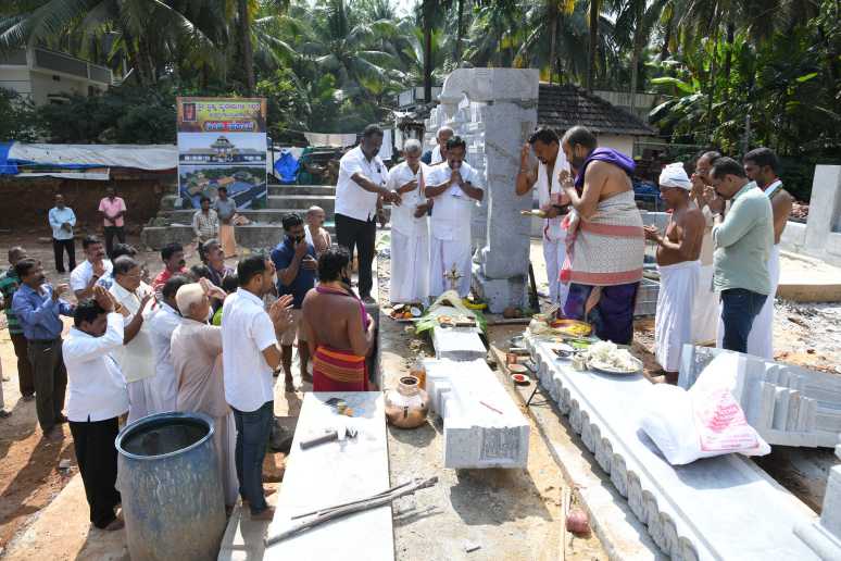 ಜೀರ್ಣೋದ್ಧಾರಗೊಳ್ಳುತ್ತಿರುವ ಏಣಗುಡ್ಡೆ ಶ್ರೀ ಬ್ರಹ್ಮ ಬೈದೇರುಗಳ ಗರಡಿಯ ಪ್ರಧಾನ ಶಿಲಾ ದ್ವಾರದ ಸ್ಥಾಪನೆ