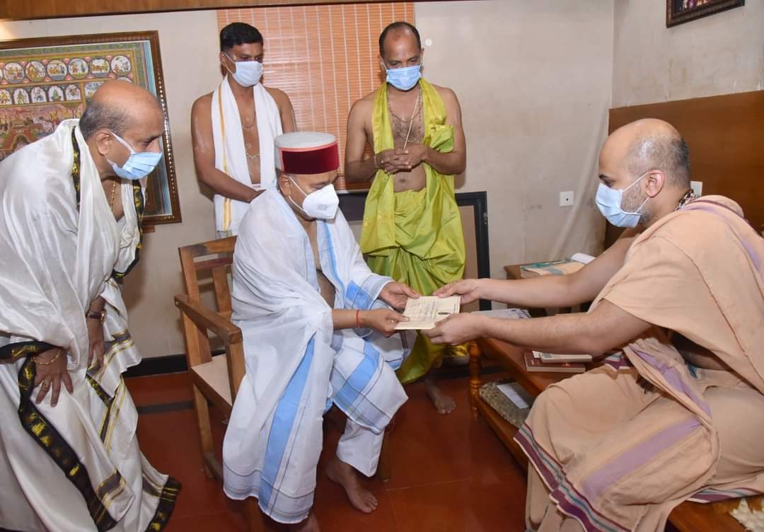 ಉಡುಪಿ ಶ್ರೀ ಕೃಷ್ಣ ಮಠ ಭೇಟಿ ; ಅದಮಾರು ಮಠಾಧೀಶರಿಂದ ಪರ್ಯಾಯ ಮಂಗಲೋತ್ಸವದ ಆಮಂತ್ರಣ ಪತ್ರಿಕೆ ಸ್ವೀಕರಿಸಿದ ರಾಜ್ಯಪಾಲರು