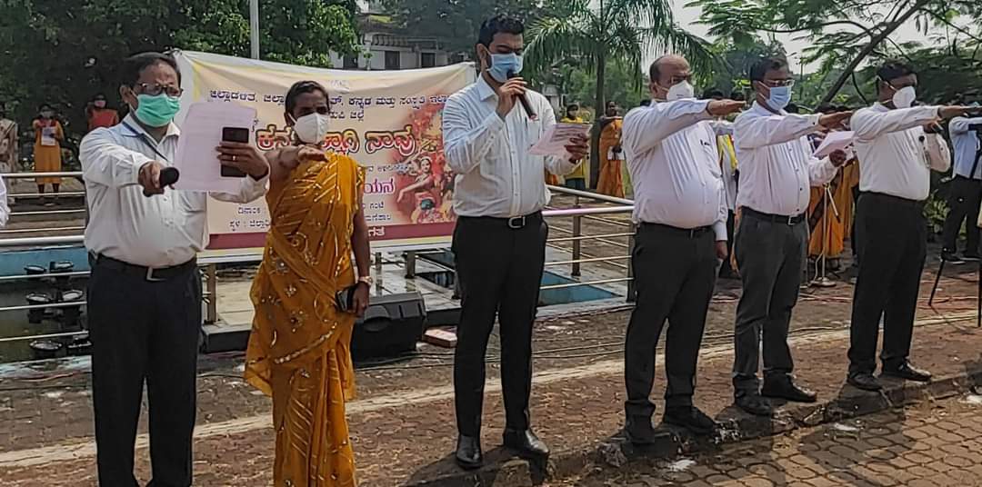 ಉಡುಪಿ : ಕನ್ನಡ ರಾಜ್ಯೋತ್ಸವದ ಪ್ರಯುಕ್ತ ಲಕ್ಷ ಕಂಠ ಗಾಯನ ಕಾರ್ಯಕ್ರಮದಡಿ ,ನಾಡಗೀತೆ ಜಯ ಭಾರತ ಜನನಿಯ ತನುಜಾತೆ ಸೇರಿದಂತೆ, ಕನ್ನಡದ ಶ್ರೇಷ್ಠತೆಯನ್ನು ಸಾರುವ , ಬಾರಿಸು ಕನ್ನಡ ಡಿಂಡಿಮವ, ಜೋಗದ ಸಿರಿ ಬೆಳಕಿನಲ್ಲಿ, ಹುಟ್ಟಿದರೆ ಕನ್ನಡ ನಾಡಲ್ಲಿ ಹುಟ್ಟಬೇಕು ಈ ಗೀತೆಗಳನ್ನು , ರಜತಾದ್ರಿಯ ಜಿಲ್ಲಾಡಳಿತ ಸಂಕೀರ್ಣದ ಆವರಣ ಸೇರಿದಂತೆ ಜಿಲ್ಲೆಯಾದ್ಯಂತ ಇಂದು ಬೆಳಗ್ಗೆ 11 ಗಂಟೆಗೆ ಏಕಕಾಲದಲ್ಲಿ ಹಾಡುವ ಮೂಲಕ ಜಿಲ್ಲೆಯಾದ್ಯಂತ ಕನ್ನಡದ ಕಂಪನ್ನು ಹರಡಲಾಯಿತು. ರಜತಾದ್ರಿಯ ಜಿಲ್ಲಾಡಳಿತ ಸಂಕೀರ್ಣದ ಆವರಣದಲ್ಲಿ ಸುಮಾರು 750 ಕ್ಕೂ ಅಧಿಕ ಮಂದಿಯಿಂದ ಕನ್ನಡ ಗೀತೆಗಳ ಗಾಯನ ನಡೆಯಿತು, ಪ್ರಬಾರ ಜಿಲ್ಲಾಧಿಕಾರಿ ಹಾಗೂ ಜಿ.ಪಂ. ಮುಖ್ಯ ಕಾರ್ಯನಿರ್ವಹಣಾಧಿಕಾರಿ ಡಾ.ನವೀನ್ ಭಟ್ ,ಅಪರ ಜಿಲ್ಲಾಧಿಕಾರಿ ಸದಾಶಿವ ಪ್ರಭು, ಜಿ.ಪಂ. ಉಪ ಕಾರ್ಯದರ್ಶಿ ಕಿರಣ್ ಪೆಡ್ನೇಕರ್ ಸೇರಿದಂತೆ ವಿವಿಧ ಇಲಾಖೆಗಳು ಅಧಿಕಾರಿಗಳು ಮತ್ತು ಸಿಬ್ಬಂದಿಗಳು ಹಾಗೂ ಮಣಿಪಾಲ ಜೂನಿಯರ್ ಕಾಲೇಜಿನ ವಿದ್ಯಾರ್ಥಿಗಳು ಭಾಗವಹಿಸಿದ್ದರು. ಕಾರ್ಯಕ್ರಮಕ್ಕಾಗಿ ಬಹುತೇಕ ಪುರುಷ ಸಿಬ್ಬಂದಿಗಳು ಬಿಳಿ ಬಣ್ಣದ ಶರ್ಟ್ ಗಳು ಮತ್ತು ಮಹಿಳಾ ಸಿಬ್ಬಂದಿಗಳು ಹಳದಿ ಬಣ್ಣದ ಉಡುಪುಗಳನ್ನು ಧರಿಸಿದ್ದು ವಿಶೇಷವಾಗಿತ್ತು. ಇದೇ ಸಂದರ್ಭದಲ್ಲಿ ಕನ್ನಡವನ್ನು ಎಲ್ಲಾ ಸ್ಥಳದಲ್ಲಿ , ಎಲ್ಲಾ ಕಾರ್ಯದಲ್ಲೂ ಬಳಸುವುದಾಗಿ ಸಂಕಲ್ಪ ಕೈಗೊಳ್ಳಲಾಯಿತು. ಜಿಲ್ಲೆಯ ಪ್ರತೀ ಗ್ರಾಮ ಪಂಚಾಯತ್ ಸೇರಿದಂತೆ ಜಿಲ್ಲೆಯ 20 ಕ್ಕೂ ಅಧಿಕ ಪ್ರೇಕ್ಷಣಿಯ ಸ್ಥಳಗಳಲ್ಲಿ ಏಕಕಾಲದಲ್ಲಿ ಈ ಗಾಯನ ಕಾರ್ಯಕ್ರಮ ನಡೆದಿದ್ದು, ಜಿಲ್ಲೆಯಾದ್ಯಂತ ಸುಮಾರು 60 ರಿಂದ 63 ಸಾವಿರ ಮಂದಿ ಈ ಕಾರ್ಯಕ್ರಮದಲ್ಲಿ ಭಾಗವಹಿಸಿದ್ದು,ಎಲ್ಲರಿಗೂ ಕಾರ್ಯಕ್ರಮ ಅತ್ಯಂತ ಸಂತೋಷ ತಂದಿದೆ ಎಂದು ಪ್ರಭಾರ ಜಿಲ್ಲಾಧಿಕಾರಿ ಹಾಗೂ ಜಿ.ಪಂ. ಮುಖ್ಯ ಕಾರ್ಯನಿರ್ವಹಣಾಧಿಕಾರಿ ಡಾ.ನವೀನ್ ಭಟ್ ಹೇಳಿದರು.