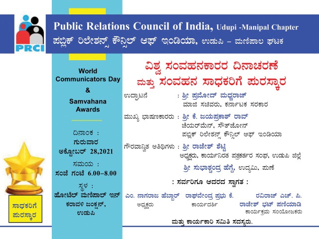 ಅ. 28 : ವಿಶ್ವ ಸಂವಹನಕಾರರ ದಿನಾಚರಣೆ, ಸಾಧಕರಿಗೆ ಪುರಸ್ಕಾರ