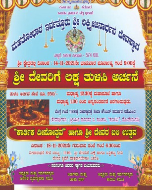 ಮಹತೋಭಾರ ಇರ್ವತ್ತೂರು ಶ್ರೀ ಲಕ್ಷ್ಮೀಜನಾರ್ಧನ ದೇವಸ್ಥಾನದಲ್ಲಿ ಲಕ್ಷ ತುಳಸಿ ಅರ್ಚನೆ, ಕಾರ್ತಿಕ ದೀಪೋತ್ಸವ ಹಾಗೂ ಶ್ರೀ ದೇವರ ಬಲಿ ಉತ್ಸವ