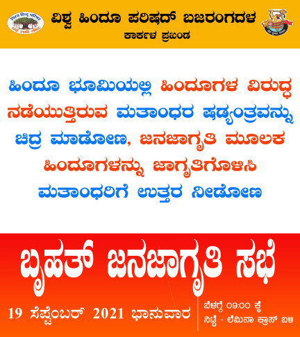 ಕಾರ್ಕಳ : ವಿಶ್ವ ಹಿಂದೂ ಪರಿಷದ್ ಬಜರಂಗದಳ ಕಾರ್ಕಳ ಪ್ರಖಂಡದ ಆಶ್ರಯದಲ್ಲಿ ಮತಾಂಧತೆಯ ವಿರುದ್ಧ ನಡೆಯಲಿರುವ ಬೃಹತ್ ಜನ ಜಾಗೃತಿ ಸಭೆಗೆ ರಾಮ್ ಸೇನಾ ಕುಂಟಾಡಿ ಘಟಕ ಬೆಂಬಲ ನೀಡಿದೆ.