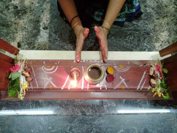 ತುಲು ಅಪ್ಪೆ ಬಾಸೆ ಆದುಪ್ಪುನ ತುಳುಬೆರಣೆರೆ್ ಪೊಂಜೋವು ' ಆಟಿದ ಪುನ್ನಮೆದಾನಿ' ತಡ್ಯಪುಡಾಡುನ ಅತ್ತಡ ತಡ್ಯ ಪುಡ್ಯಾಡುನ ಪೊರ್ಲುದ ಕ್ರಮ ಗಮನಿಪೊಡಾಯಿನ ಸಂಗತಿ . ತುಳುಬೆರಣೆರೆ್ ಮುತ್ತೇಸಿ ಪೊಂಜೋವು ದಿನ ನಿಚ್ಚಲ ಕಾಂಡೆ ತಡ್ಯ ಬರೆದ್ ,ತಡ್ಯೊಗು ಕುಂಕುಮ - ಮಂಜೊಲು ಮುಟ್ಟಾದ್ ನೀರ್ದ ಚೊಂಬುನಿ ತಡ್ಯದ ಮಿತ್ತ್ ದೀದ್ ಪುಡಾಡುವೆರ್ .ಚೊಂಬುದ ನೀರ್ನ್ ತುಲಸಿಗ್ ಮೈತ್ ದ್ ,ತುಲಸಿಗ್ ಕುಂಕುಮ ಮುಟ್ಟಾದ್ ಪುಡಾಡುವೆರ್ . ಅಂಚೆನೆ ರಾತ್ರಿ ಪೂಜೆ ಆಯಿಬೊಕ್ಕ ಪೂಜೆಗ್ ದೀಯಿನ ಪೇರ್ ಬೊಕ್ಕ ಪೂಜೆ ಮಲ್ತಿನ ಅರ್ಲೊಂದುಪ್ಪುನ ಆರತಿನ್ ತಡ್ಯದ ಮಿತ್ತ್ ದೀದ್ ಪುಡಾಡುನ ಕ್ರಮಲಾ ಉಂಡು .ಇಲ್ಲದ ಪೊಣ್ಣು ಜೋಕುಲು , ಮುತ್ತೇಸಿ ಪೊಂಜೋವು ಮಾತೆರ್ಲ ತಡ್ಯಪುಡಾಡುವೆರ್ .ಉಂದು ದಿನ ನಿಚ್ವಲ ನಡತೊಂದು ಉಪ್ಪುನವು .ಇಲ್ಲದ ಇಂಚಿ ತಡ್ಯನ್ ಇಂಚಿನಾಕುಲೆ ಬರೆವೊಡು ಪಂಡ್ ದ್ ಲಾ ಸಂಪ್ರದಾಯ ಉಂಡು.