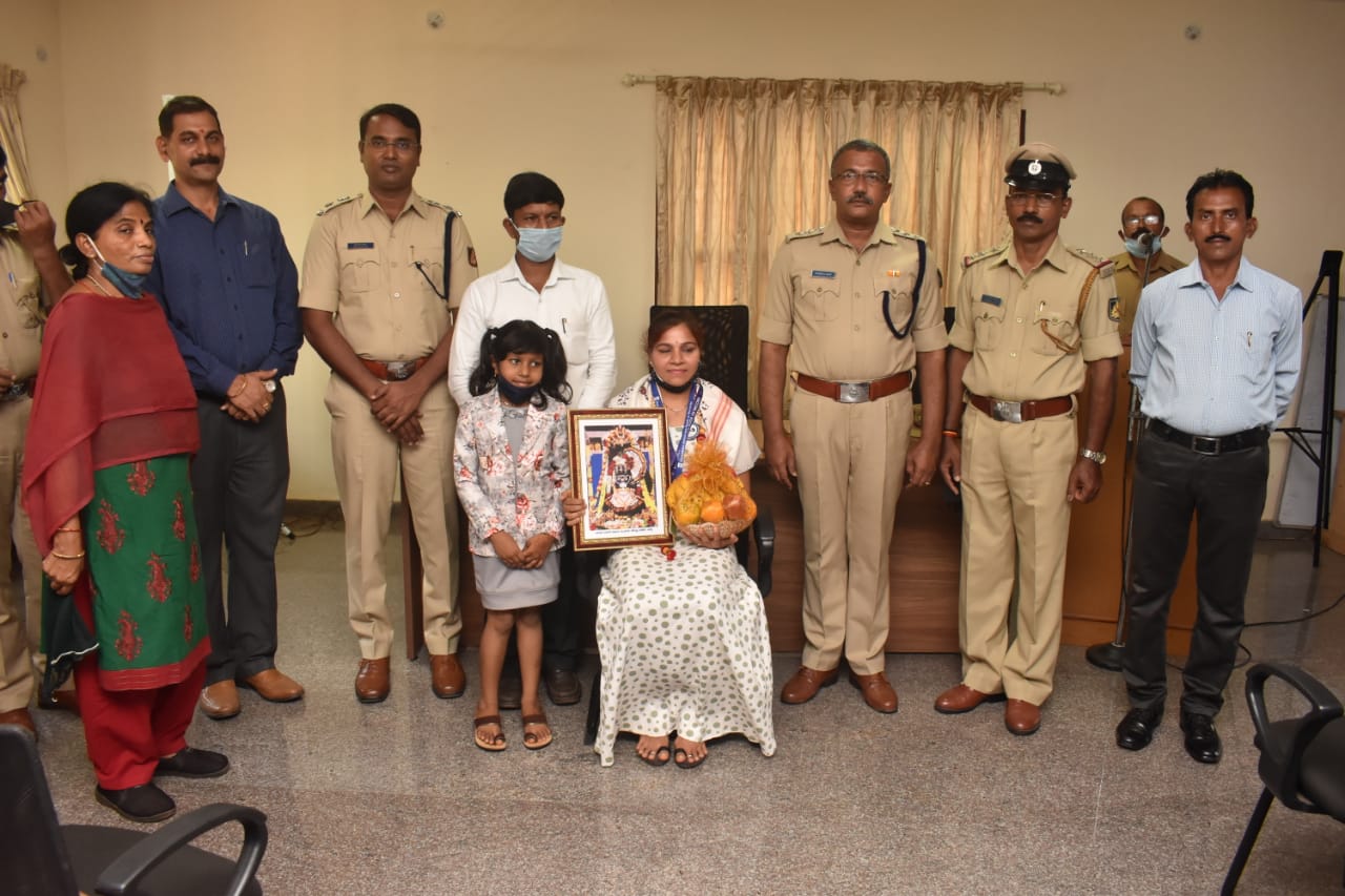 ಉಡುಪಿ : ವಿಶ್ವ ಮಹಿಳಾ ದಿನಾಚರಣೆಯಂದು ಕಡಿಮೆ ಅವಧಿಯಲ್ಲಿ 108 ಸೂರ್ಯ ನಮಸ್ಕಾರಗಳನ್ನು ಪೂರ್ಣಗೊಳಿಸಿ ಕರ್ನಾಟಕ ಎಚೀವರ್ಸ್ ಬುಕ್ ಆಫ್ ರೆಕಾರ್ಡ್ ನಲ್ಲಿ ರಾಷ್ಟ್ರಮಟ್ಟದ ದಾಖಲೆ ನಿರ್ಮಿಸಿದ ಶ್ರೀಮತಿ ರೇಣುಕಾ ಗೋಪಾಲಕೃಷ್ಣರವರನ್ನು ಸಿ ಎಸ್ ಪಿ ಪೊಲೀಸ್ ಅಧೀಕ್ಷಕ ಚೇತನ್ ಆರ್. ಐಪಿಎಸ್ ಸನ್ಮಾನಿಸಿದರು.