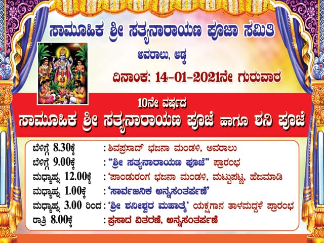 ಅವರಾಲು : 10ನೇ ವರ್ಷದ ಸಾಮೂಹಿಕ ಸತ್ಯನಾರಾಯಣ ಪೂಜೆ ಹಾಗೂ ಶನಿಪೂಜೆ