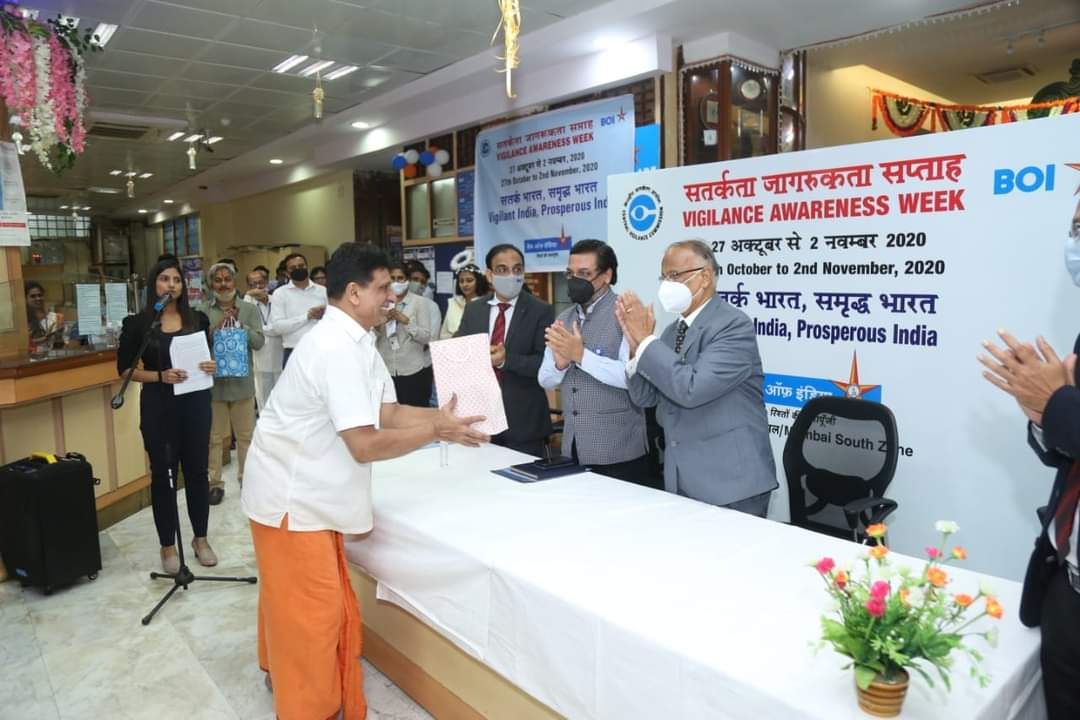 ಸಿಬಿಐ ವೆಜಿಲೆನ್ಸರ್ ಆಫ಼ೀಸರ್ ಸಮ್ಮುಖದಲ್ಲಿ ಬ್ಯಾಂಕ್ ಆಫ್ ಇಂಡಿಯಾ ಸಿಬ್ಬಂದಿಗಳಿಂದ ಶ್ರೀ ಚಂದ್ರಹಾಸ್ ಗುರುಸ್ವಾಮಿ ಇನ್ನಂಜೆ ಇವರಿಗೆ ಸನ್ಮಾನ