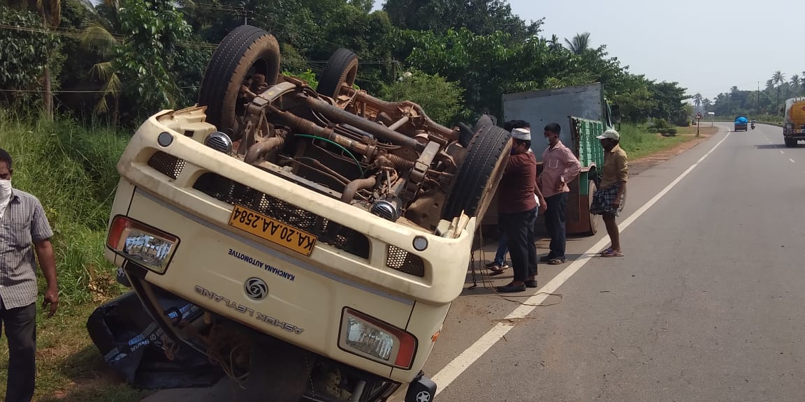 ಮೂಳೂರಿನಲ್ಲಿ ಮರದ ತುಂಡುಗಳನ್ನು ಸಾಗಿಸುತ್ತಿದ್ದ ಟೆಂಪೋ ಪಲ್ಟಿ