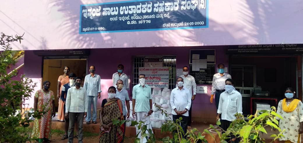 ಇನ್ನಂಜೆ ಹಾಲು ಉತ್ಪಾದಕರ ಸಹಕಾರ ಸಂಘದ ವತಿಯಿಂದ ಸಂಘದ ಎಲ್ಲಾ ಹೈನುಗಾರ ಸದಸ್ಯರಿಗೆ ಹಾಗು ಸಿಬ್ಬಂದಿ ವರ್ಗದವರಿಗೆ ತಲಾ 500 ರೂಪಾಯಿಯ ಆಹಾರ ಸಾಮಗ್ರಿಗಳ 240 ಕಿಟ್ಟುಗಳನ್ನು ತಾರೀಖು 30-4-2020ರಂದು ಸಂಘದ ಅಧ್ಯಕ್ಷರಾದ ಲಕ್ಷ್ಮಣ್ ಕೆ ಶೆಟ್ಟಿ, ಹಾಗು ಉಪಾಧ್ಯಕ್ಷರಾದ ಮಹೇಶ್ ಸುವರ್ಣ, ನಿರ್ದೇಶಕರಾದ ರಾಘವೇಂದ್ರ ಉಪಾದ್ಯಾಯ, ರಾಮ ಶೆಟ್ಟಿ ಮಡುಂಬು, ಶಿವರಾಮ ಶೆಟ್ಟಿ, ಉದಯ ಮೂಲ್ಯ, ಉಮೇಶ್ ಆಚಾರ್ಯ, ನಾಗರಾಜ್ ಮುಚಂತಾಯ, ಜಯ ಪೂಜಾರಿ, ಶ್ರೀಮತಿ ಸುಮತಿ ಅಂಚನ್, ಶ್ರೀಮತಿ ಬೇಬಿ, ಪದ್ಮ ಮುಖಾರಿ ಯವರ ಉಪಸ್ಥಿತಿಯಲ್ಲಿ ವಿತರಿಸಲಾಯಿತು. ಸಂಘದ ಕಾರ್ಯನಿರ್ವಾಹಣಾದಿಕಾರಿ ಸುಬ್ರಹ್ಮಣ್ಯ ಭಟ್ ಸ್ವಾಗತಿಸಿ ಧನ್ಯವಾದ ನೀಡಿದರು.
