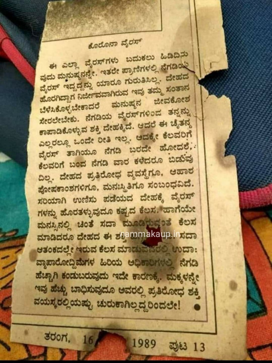 ಕೊರೊನ ವೈರಸ್ ಬಗ್ಗೆ 1989 ತರಂಗ ಪತ್ರಿಕೆಯಲ್ಲಿ ಪ್ರಕಟವಾದ ವಿಶೇಷ ವರದಿ ಈ ರೀತಿ ಇದೆ.. ಕೊರೊನ ಎಂಬುದು ಹೊಸ ರೋಗ ಇದು ಒಬ್ಬರಿಂದ ಒಬ್ಬರಿಗೆ ಹರಡುವ ರೋಗವಾಗಿದೆ.. ದೇಶ ವಿದೇಶಗಳಲ್ಲಿ ಈ ರೋಗ ವ್ಯಾಪಕವಾಗಿ ಹರಡುತ್ತಿದೆ.. ಮತ್ತು ಇದಕ್ಕೆ ಬೇಕಾದ ಚಿಕಿತ್ಸೆಯನ್ನು ಇದುವರೆಗೂ ಕಂಡು ಹಿಡಿದಿಲ್ಲ ಎಂದು ಜನರು ಮಾತನಾಡಿಕೊಳ್ಳುತ್ತಿದ್ದಾರೆ.. ಆದರೆ ಈ ಕೊರೊನ ವೈರಸ್ ಬಗ್ಗೆ ಈ ಹಿಂದೆ 1989 ರ ತರಂಗದಲ್ಲಿ ಅದಾಗಲೇ ಪ್ರಕಟವಾಗಿತ್ತು.. ನಮ್ಮ ಕಾಪು