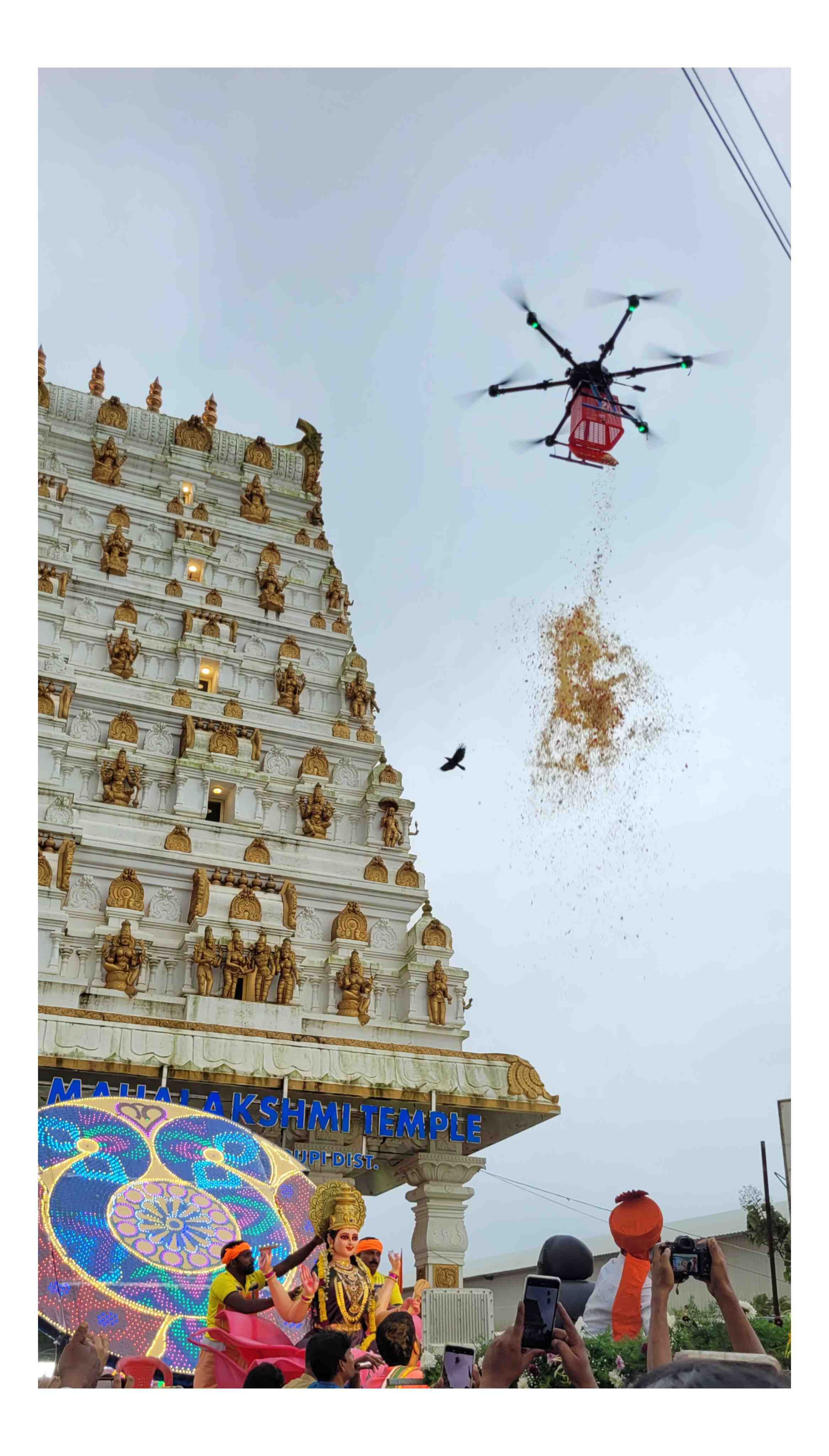 ಉಚ್ಚಿಲ : ದಕ್ಷಿಣ ಕನ್ನಡ ಮೊಗವೀರ ಮಹಾಜನ ಸಂಘ (ರಿ.) ಉಚ್ಚಿಲ ಅಧೀನದ ಉಚ್ಚಿಲ ಶ್ರೀ ಮಹಾಲಕ್ಷ್ಮಿ ದೇವಸ್ಥಾನದಲ್ಲಿ ಶನಿವಾರ 3ನೇ ವರ್ಷದ ಉಡುಪಿ ಉಚ್ಚಿಲ ದಸರಾ - 2024 ಭವ್ಯ ಶೋಭಾಯಾತ್ರೆಗೆ ವಿದ್ಯುಕ್ತ ಚಾಲನೆ ನೀಡಲಾಯಿತು. ಡ್ರೋನ್ ಪುಷ್ಪ ಸಿಂಚನ : ನವದುರ್ಗೆಯರ ಸಹಿತ ಶಾರದಾ ಮೂರ್ತಿಗೆ ಮಹಾಪೂಜೆಯ ಬಳಿಕ ವಿಶೇಷವಾಗಿ ಡ್ರೋನ್ ಮೂಲಕ ಶ್ರೀ ಶಾರದಾದೇವಿ ಮತ್ತು ನವದುರ್ಗೆಯರ ವಿಗ್ರಹಗಳಿಗೆ ಪುಷ್ಪ ಸಿಂಚನ ಮಾಡಲಾಯಿತು.