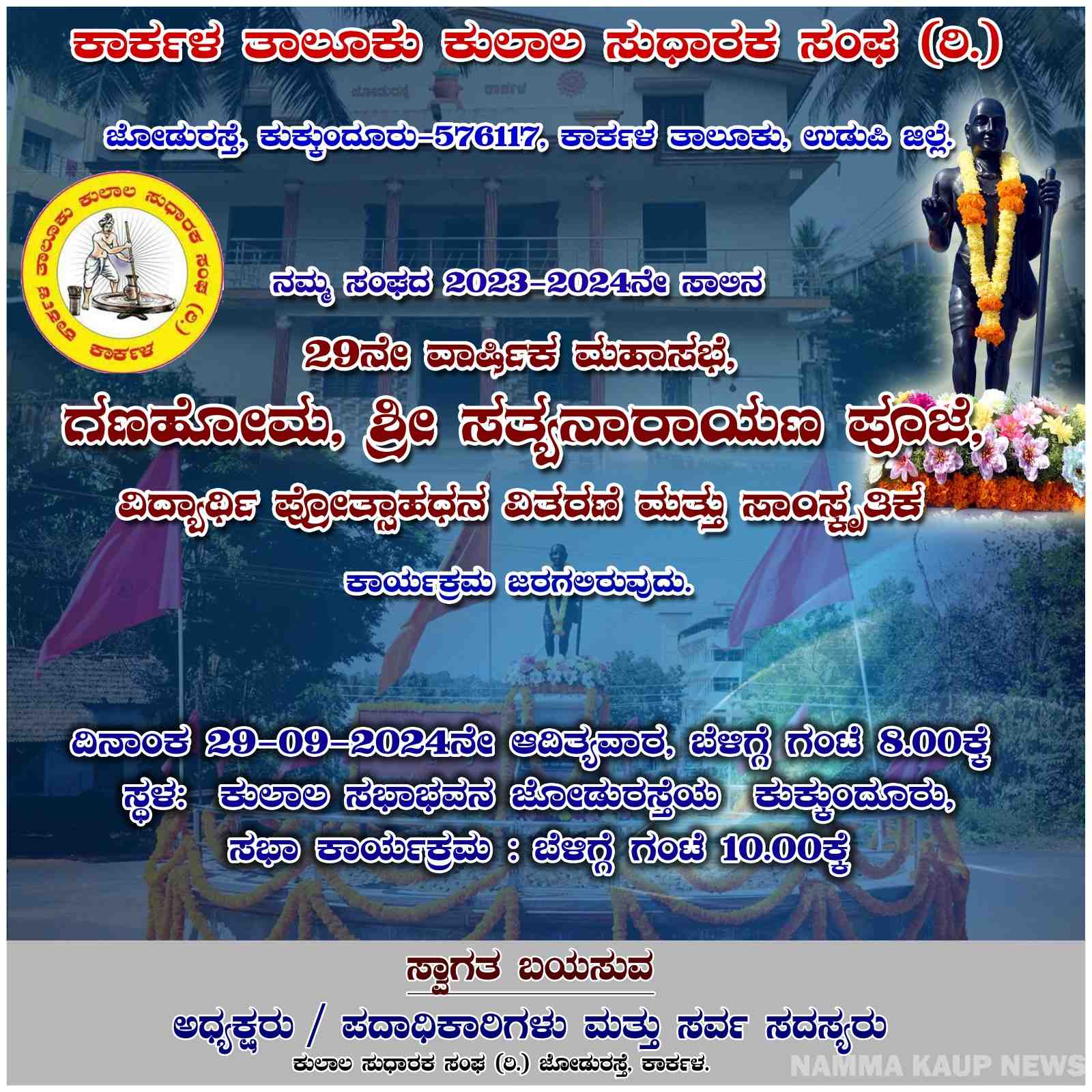 ಸೆಪ್ಟೆಂಬರ್ 29 (ನಾಳೆ) : ಕಾರ್ಕಳ ಕುಲಾಲ ಸಂಘದ ವಾರ್ಷಿಕ ಮಹಾಸಭೆ