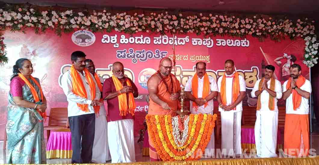 ಪಡುಬಿದ್ರಿ : ಹಿಂದು ಸಮಾಜ ಉದಾರ ಭಾವನೆಯನ್ನು ಹೊಂದಿದೆ. ಎಲ್ಲರೂ ಒಟ್ಟಿಗೆ ಒಂದಾಗಿ ಬಾಳಬೇಕೆಂಬ ಕಲ್ಪನೆಯೂ ಇದೆ. ಆದರೆ ಆ ಭಾವನೆಯು ಅನ್ಯರಿಗೂ ಇದ್ದಲ್ಲಿ ಮಾತ್ರ ಅದು ಯಶಸ್ಸು ಕಾಣಲು ಸಾಧ್ಯ. ನಮ್ಮ ಉಳಿವಿಗಾಗಿ ನಾವು ಜಾಗೃತರಾಗಿರಬೇಕು. ಜಾತೀಯತೆಯಲ್ಲಿ ಹರಿದು ಹಂಚಿ ಹೋಗದೇ, ಸಮಾಜ ಮುಖಿಯಾಗಿ ಹಿಂದುತ್ವ ಜಾಗೃತಗೊಳ್ಳಬೇಕಿದೆ. ಧಾರ್ಮಿಕ ಕೇಂದ್ರಗಳ ಮುಖ್ಯಸ್ಥರು ಈ ಬಗ್ಗೆ ಚಿಂತಿಸಿ ಸಮಾಜದ ರಕ್ಷಣೆಗೆ ಮಹತ್ವದ ನಿರ್ಧಾರದೊಂದಿಗೆ ಮುಂದಡಿ ಇರಿಸುವ ಅವಶ್ಯಕತೆ ಇದೆ ಎಂದು ಶ್ರೀಮದ್ ಜಗದ್ಗುರು ಆನೆಗುಂದಿ ಮಹಾ ಸಂಸ್ಥಾನ ಸರಸ್ವತೀ ಪೀಠದ ಅನಂತಶ್ರೀವಿಭೂಷಿತ ಕಾಳಹಸ್ತೇಂದ್ರ ಸರಸ್ವತೀ ಮಹಾಸ್ವಾಮೀಜಿ ಹೇಳಿದರು. ಅವರು ಭಾನುವಾರ ಕಾಪು ತಾಲೂಕು ವಿಶ್ವ ಹಿಂದು ಪರಿಷದ್ ವತಿಯಿಂದ ಪಡುಬಿದ್ರಿ ಬಂಟರ ಭವನದಲ್ಲಿ ನಡೆದ ವಿಶ್ವ ಹಿಂದು ಪರಿಷದ್ನ ಷಷ್ಠಿಪೂರ್ತಿ ವರ್ಷದ ಪ್ರಯುಕ್ತ ಹಿಂದೂ ಸಮಾವೇಶದಲ್ಲಿ ಆಶೀರ್ವಚನ ನೀಡುತ್ತಾ ಮಾತನಾಡಿದರು.